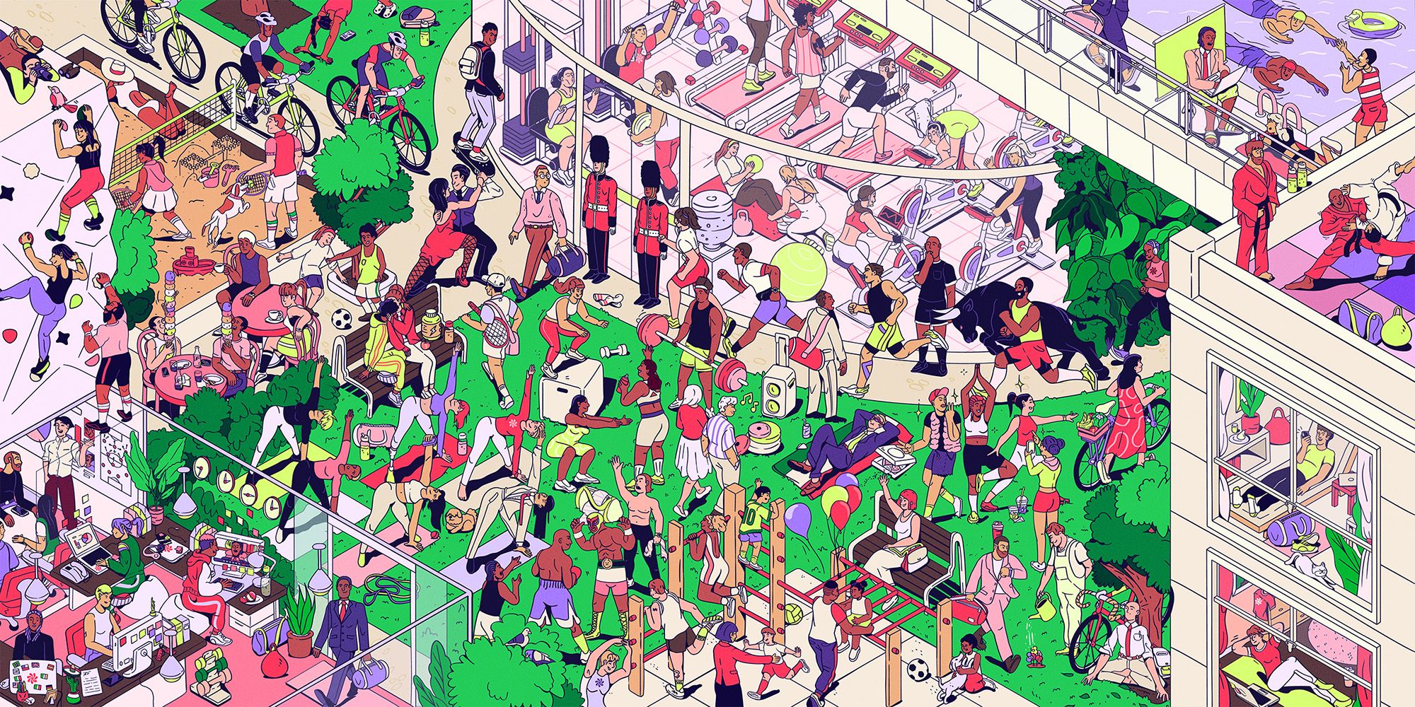 Pum were challenged to create a single image for Wellness's rebrand, to be used for their entire branding. They were asked to include all the possible ways that an employee might afford themselves better wellness.