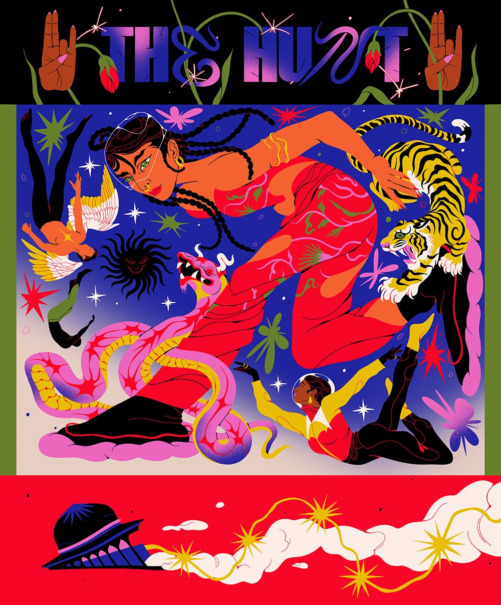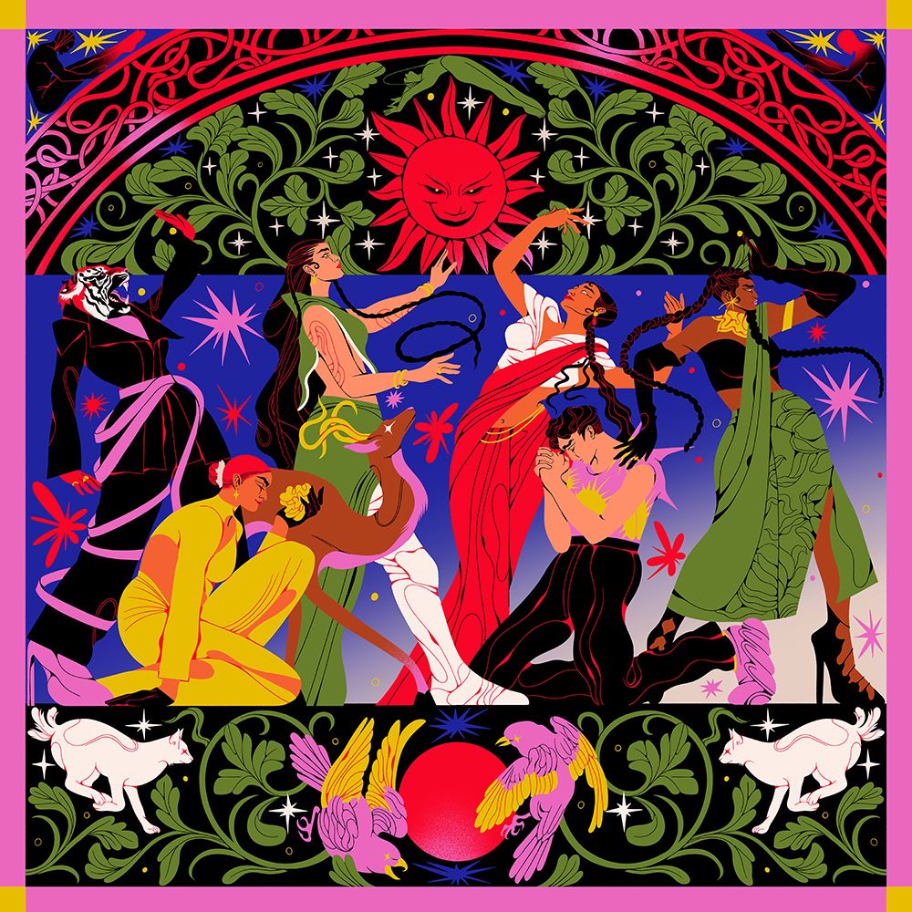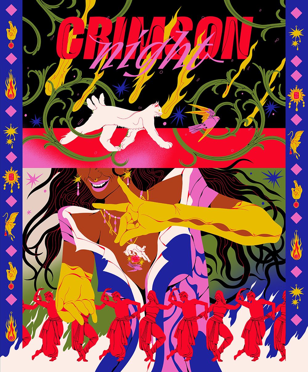 Cosmicpunk is a bold and vibrant exhibition from the minds of Boomranng which merges their passion for mythology and folklore with science fiction and maximalism. Each piece centres on a narrative which is re-shaped through Boomranng's mysterious and energetic lens, in their classic contrasting colour palette that plays with the themes of light and dark, reflecting the central themes of the folklores.