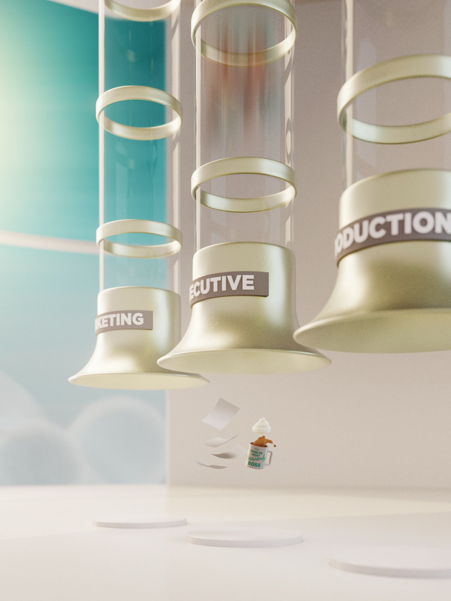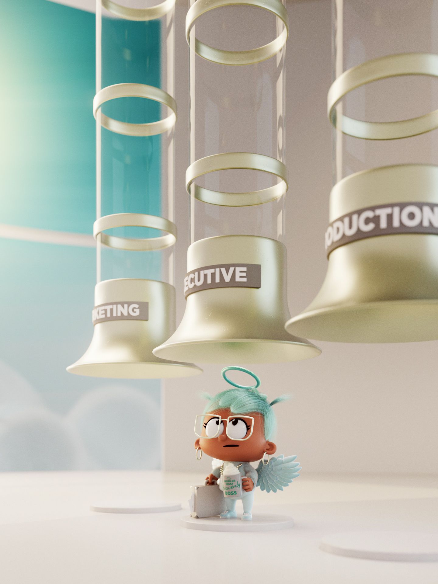 "[The brand] characters’ universe isn’t far off our own. Sure, those are fantastical beings living and working in the skies, but a lot of the daily life is similar to our own. We can totally relate to their working day. We can spot similarities in their office and factory, even if it is just subconscious. Instead of chatting at the watercooler they do this at the whip cream dispenser. Their computers crash, the coffee machine is out of water, there’s no wifi reception on the factory floor and the projector just does not connect. It is those subtle similarities which makes the world charming, relatable, and endlessly expandable."