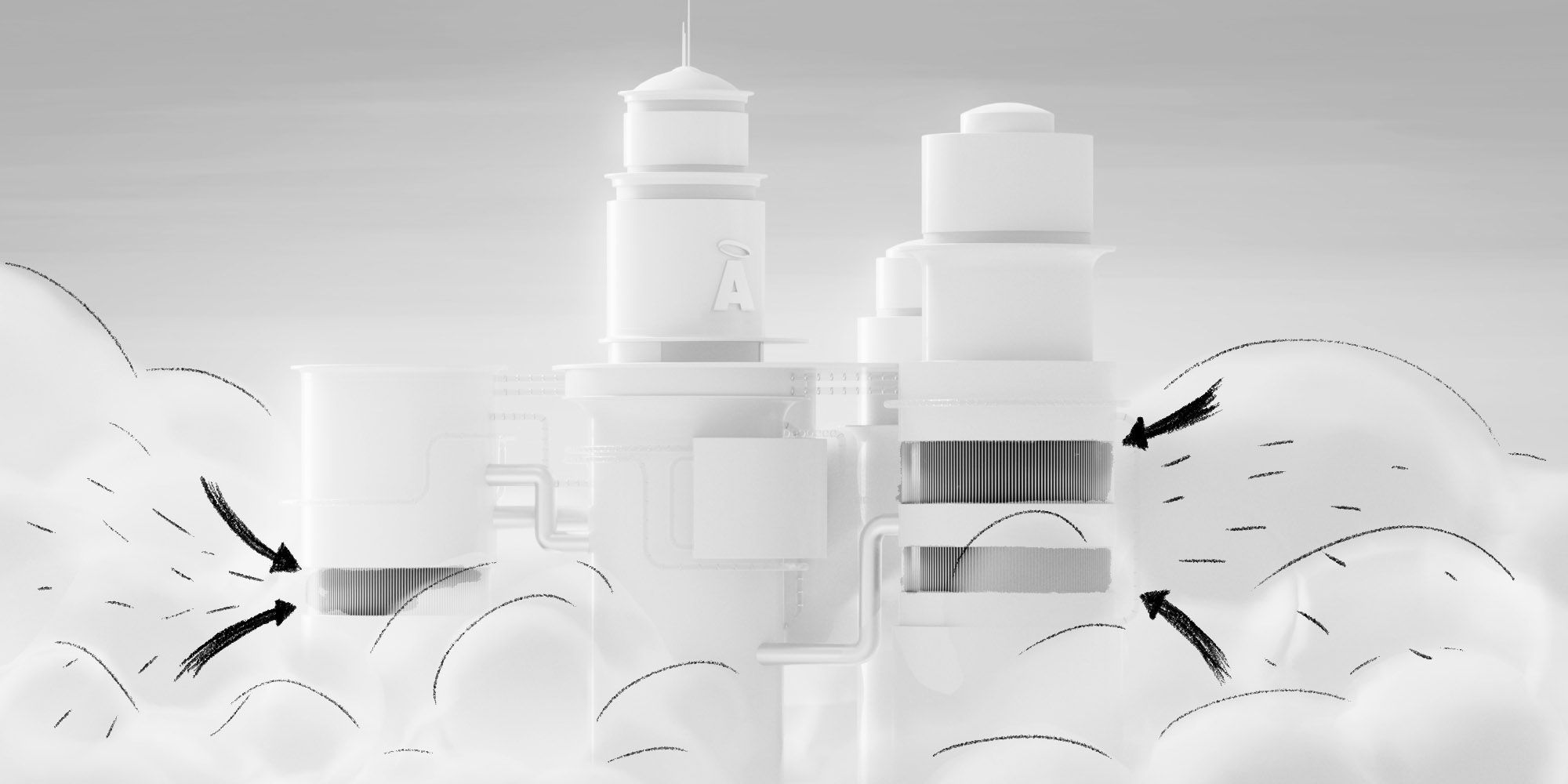 "The clouds get absorbed by the giant filter system. An industrial strength cloud compressor condenses the clouds to the pulp that is then layered to create the toilet paper."