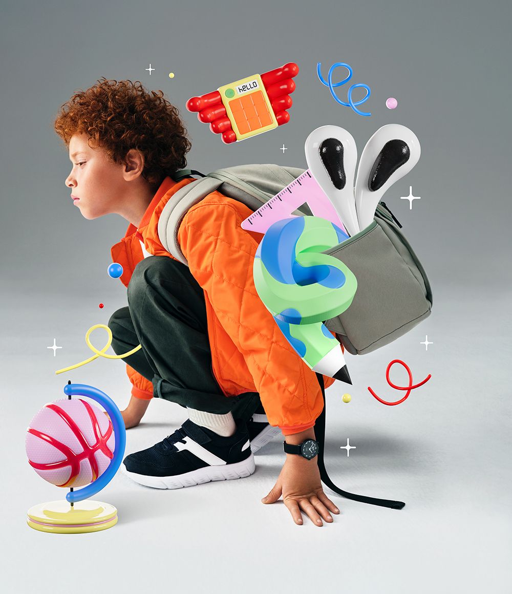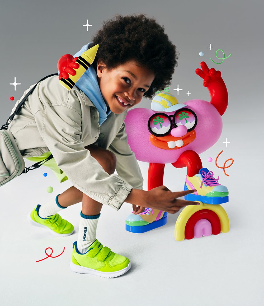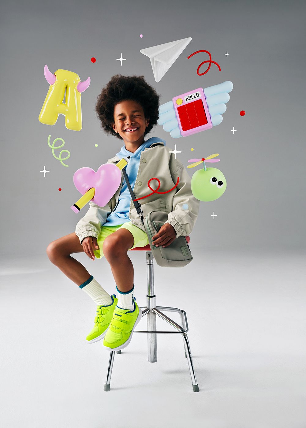 Eva uses her trademark style creating cool characters bringing a fun twist to the back to school season. Each playful character is accompanied by classic school items like pencils & paper clips which are reimagined in Eva’s bright aesthetic.