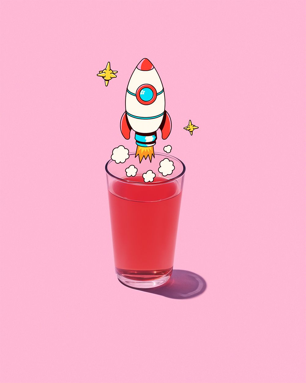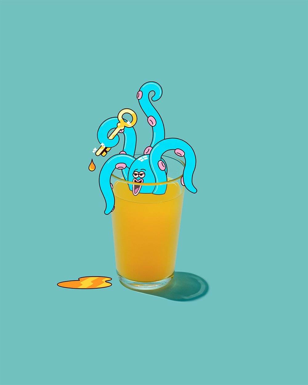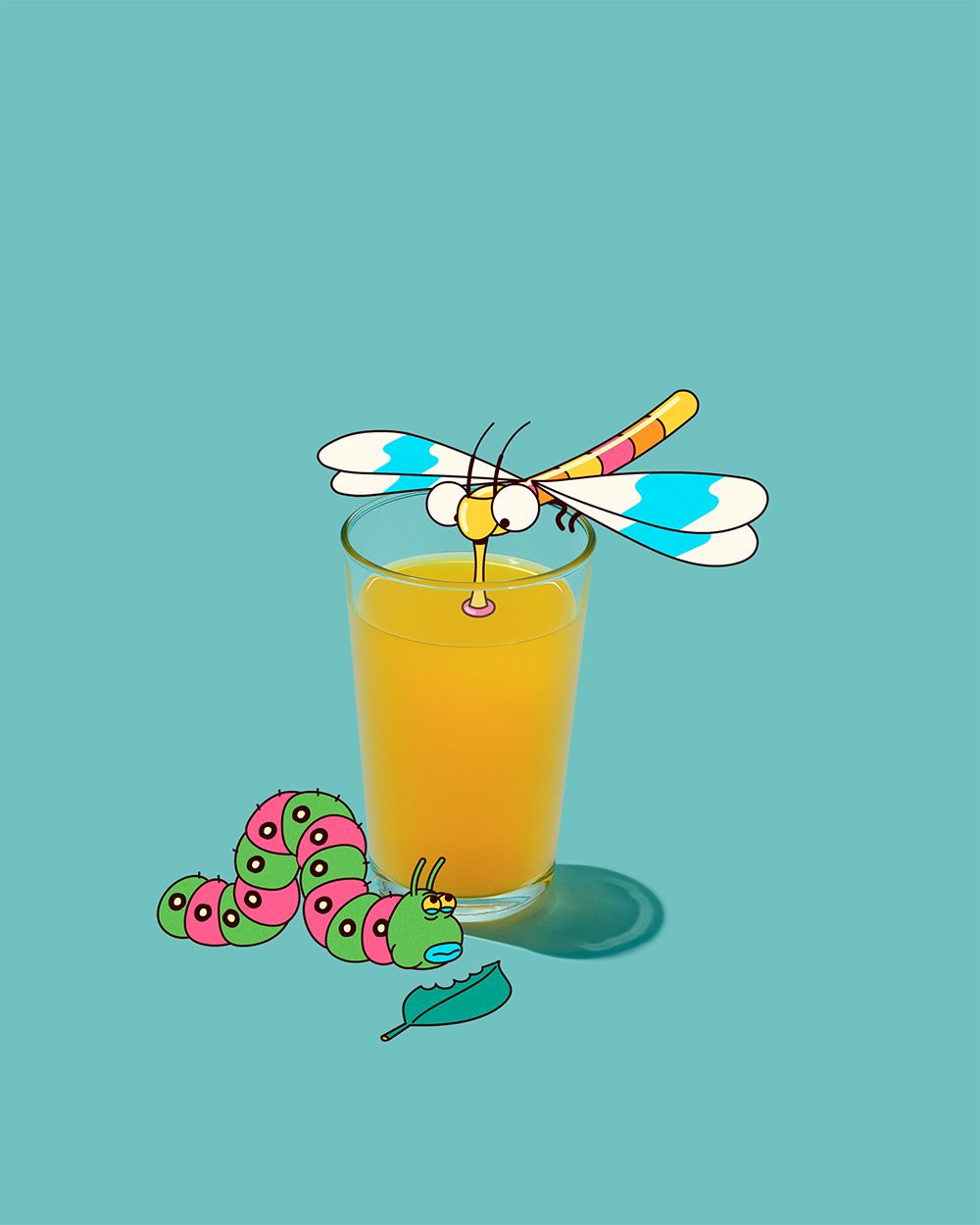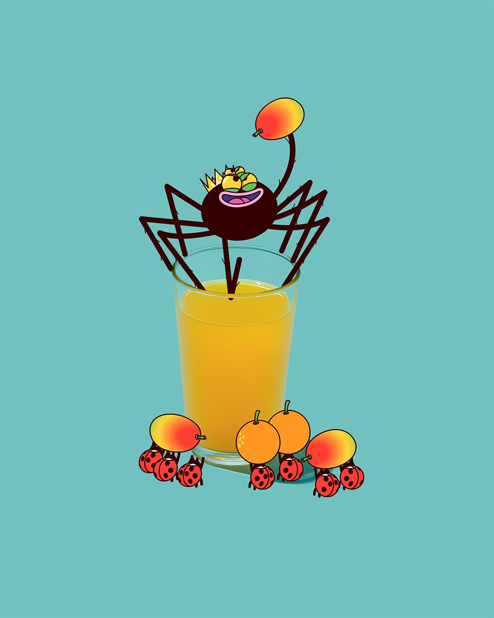 Ensuring the product remained central to the campaign, real footage was used to hero the glasses of squash with Charlie’s animations overlaid on top, drawing on inspirations from is own childhood and experiences as a parent to create his characters’ imaginations.