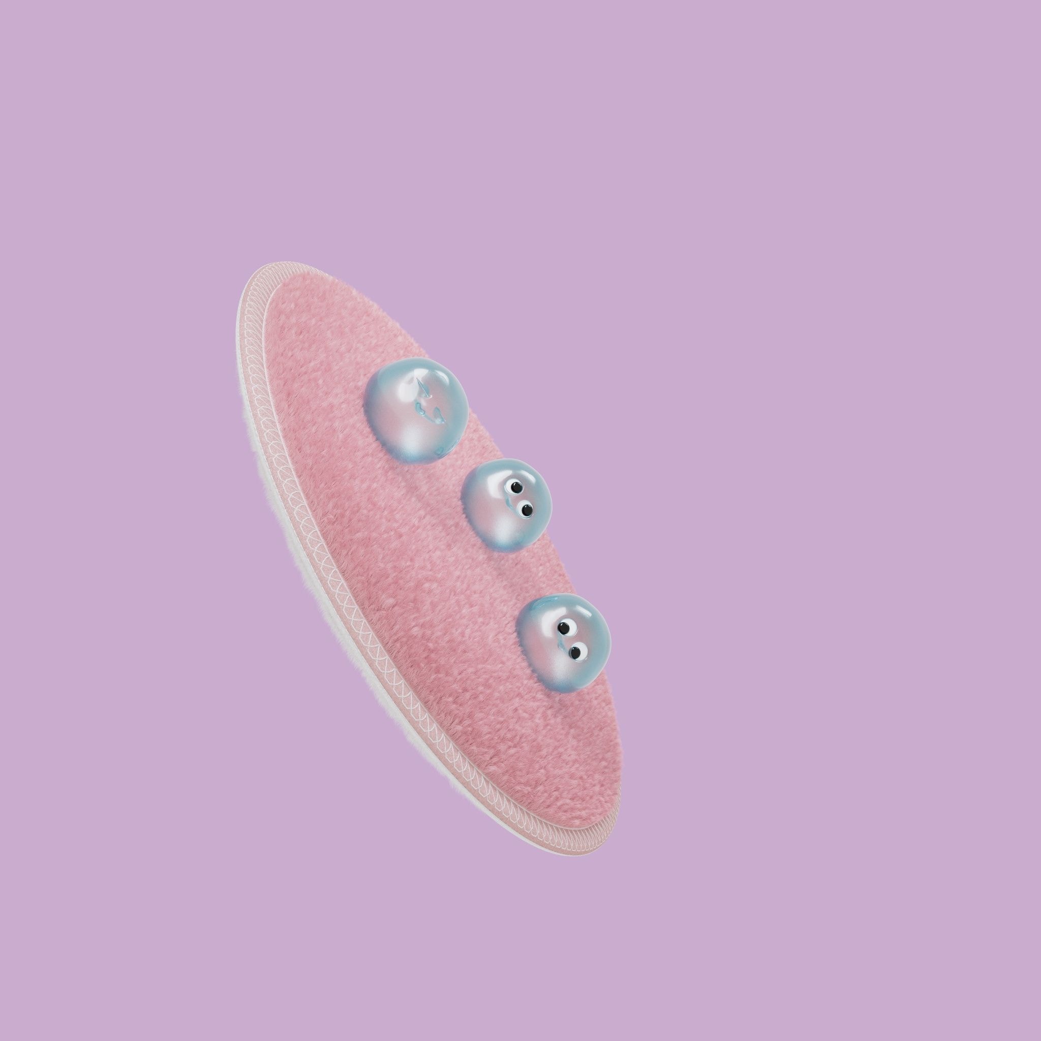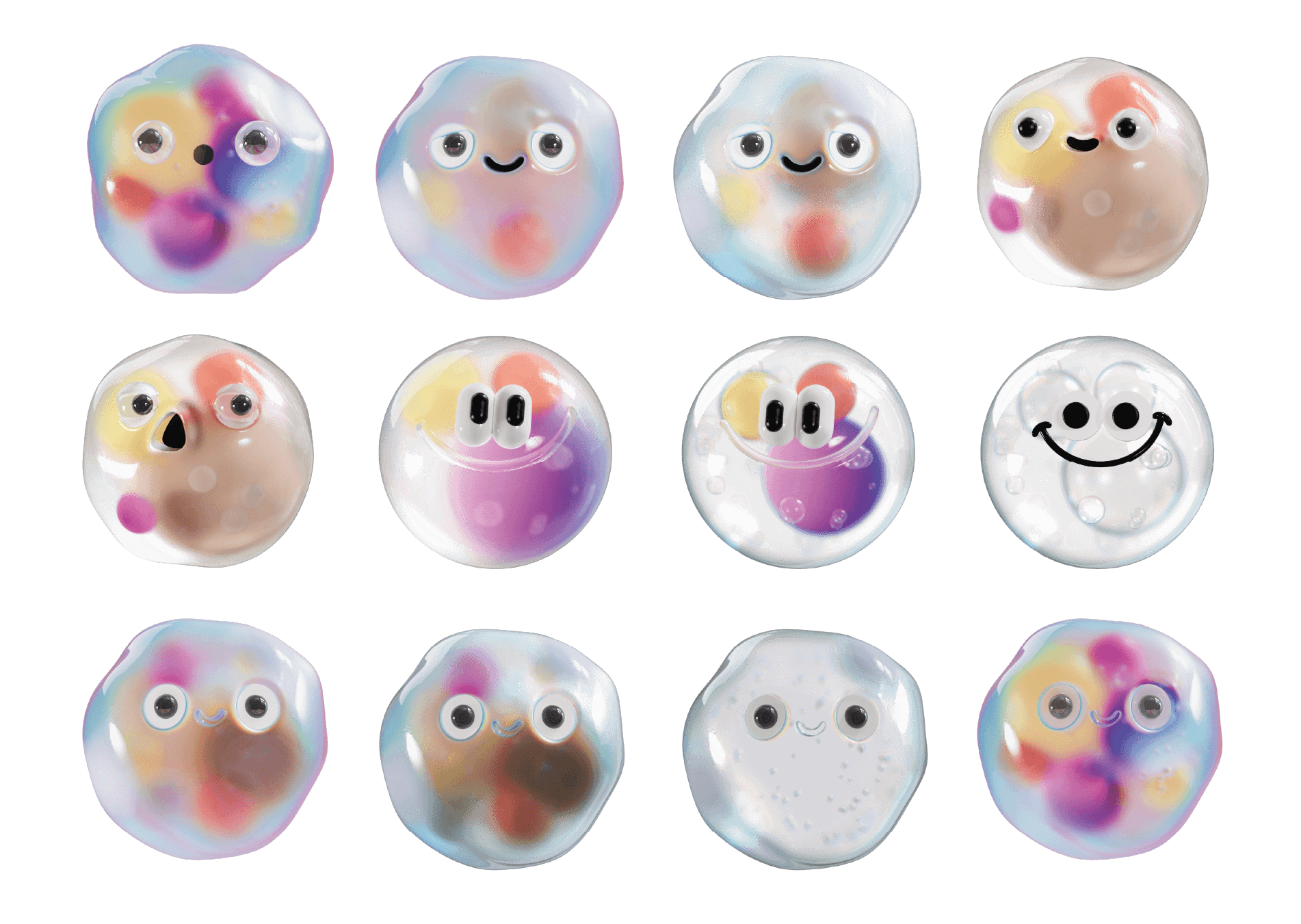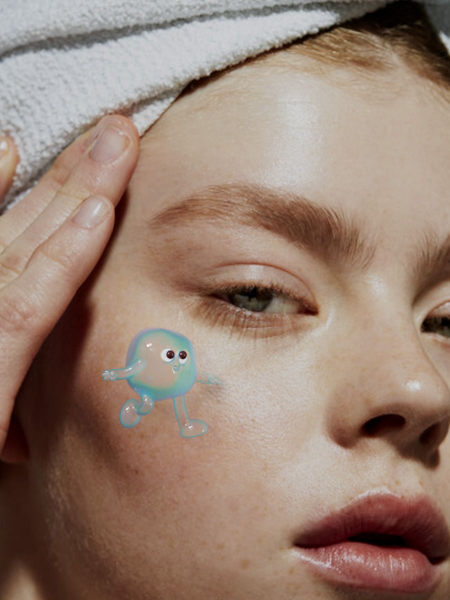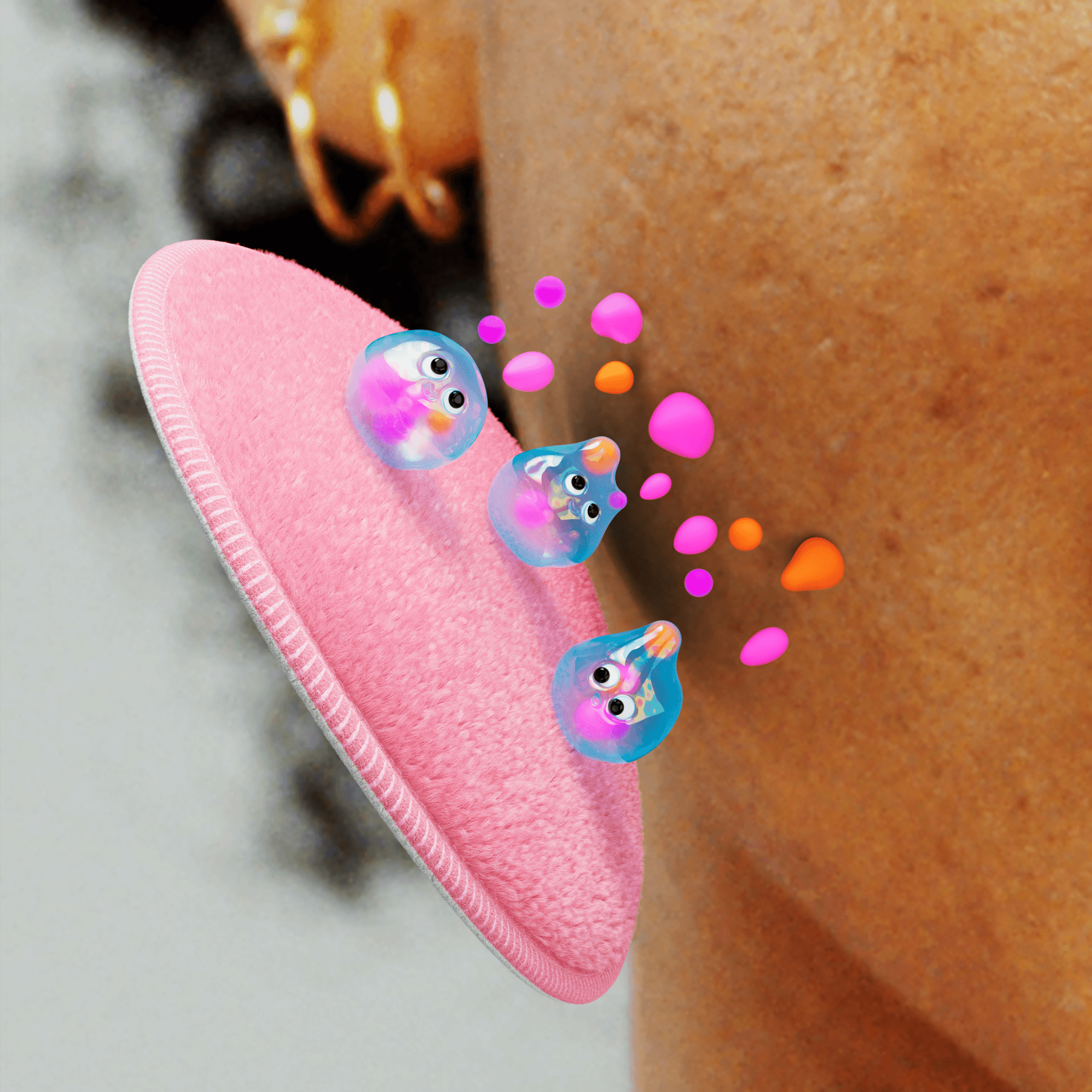 Known for her characters full of joy and life, Eva’s approach to the design of these mini Micelles contended with how to make tiny transparent bodies into true scene-stealers in the sunny live-action environment. The Micelles would also have to show up in two distinct states: pristine from the bottle, pre-cleanse and post-cleanse, bellies full with all the end of the day or post workout dirt and make-up they absorbed.