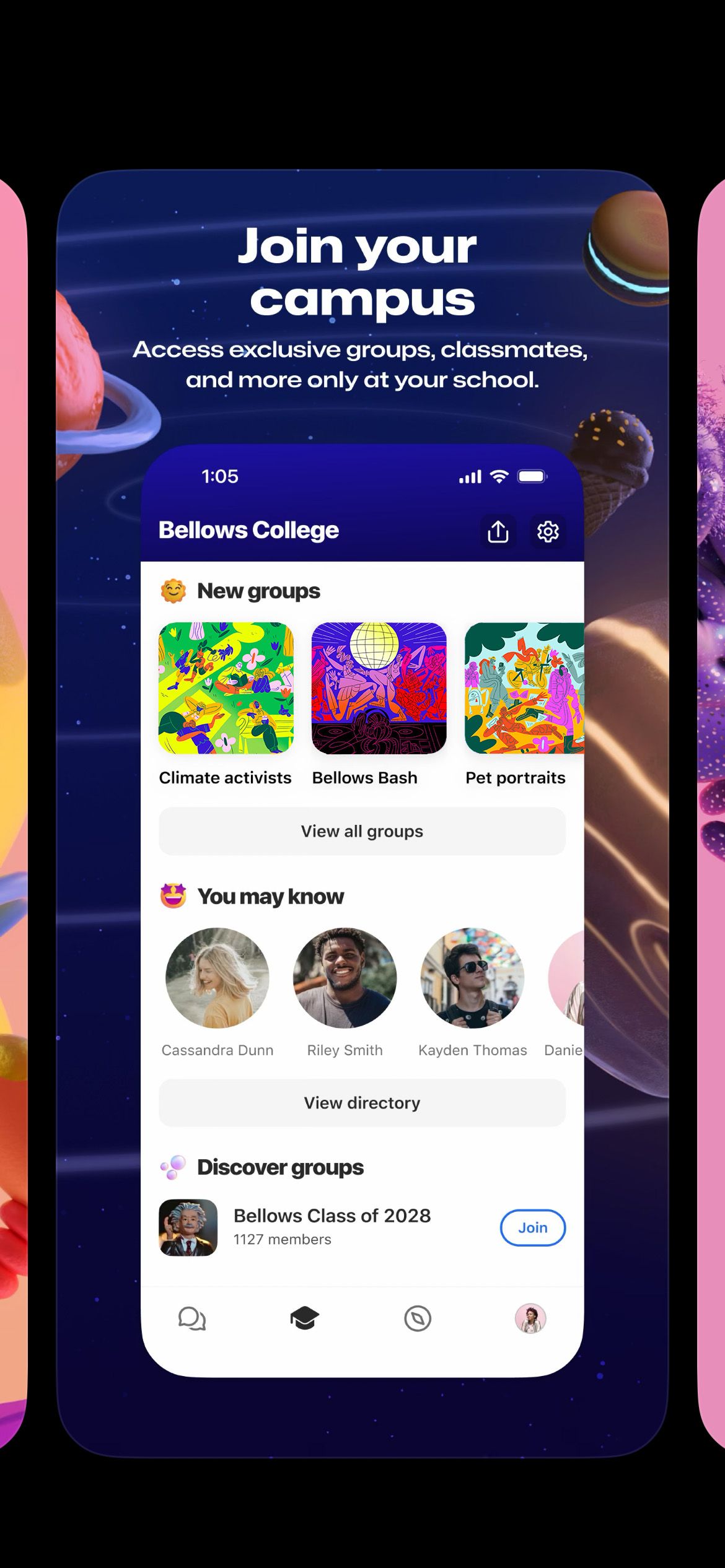 Working directly with Microsoft-owned GroupMe, Meredith was approached to design a series of illustrations for the popular messaging app used by college and university students as part of their app branding and overall visual image.