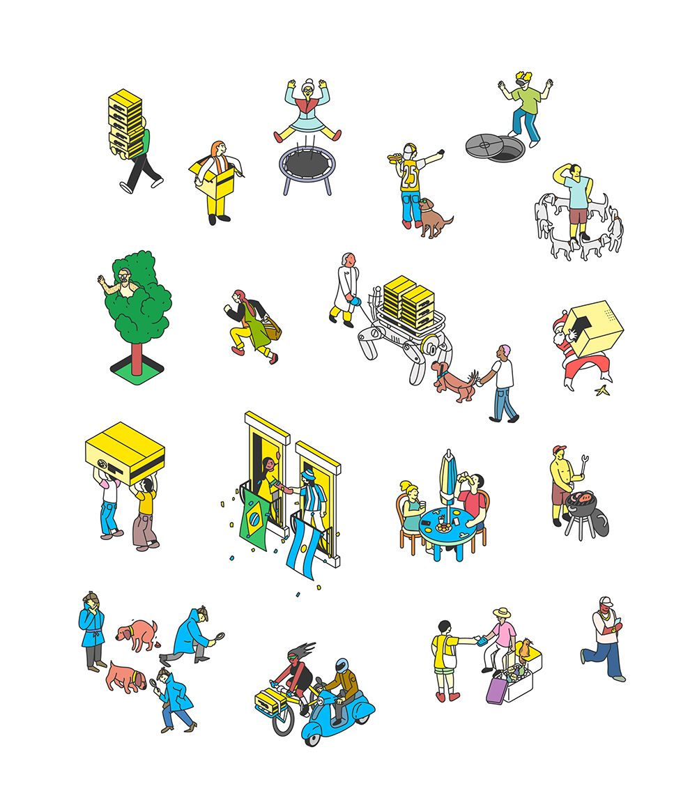 Filling the design with nods to the brand's milestones over the years and the campaign slogan ' Every need fits in a box' the piece was designed to be separated into key zones - residential, digital and physical commerce, the distribution center, their office in São Paulo, the Mercado Livre Arena Pacaembu and a transportation system. This allowed Pum to illustrate the journeys Mercado Livre boxes go on to reach their destinations, and how integrated they are in the every day lives of their customers.