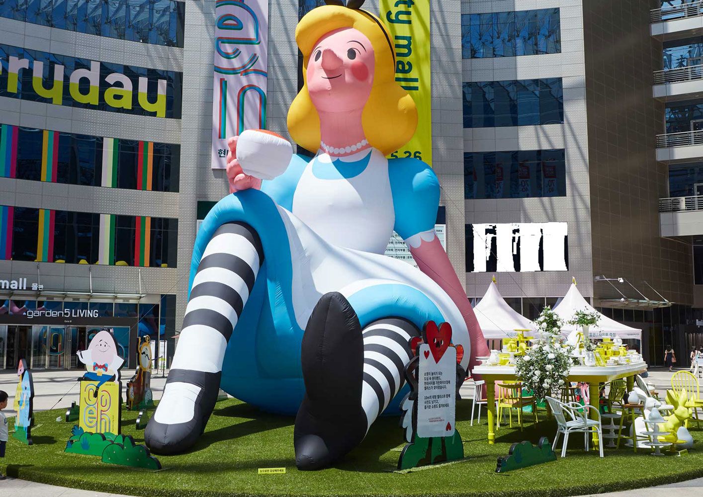 Freya Bett’s just recently returned from a trip to New York with a project for Apple Original – she held a talk in the Apple shop plus an appearance at Comic Con. It was just such a perfect fit for Freya. Our first project with Tishk Barzanji was for Film4 Summer Screen at Somerset House, from the client to the style to the venue it was just a great fit. Chervelle Fryer’s Fortnum & Mason campaign with Otherway was a total dream. The art director Thomas saw Chervelle’s talent for character in one of her pieces – sometimes just once piece is a catalyst – and we worked closely to create a huge Xmas frieze which was Fortnum & Mason’s brochure and Xmas window display. The storytelling and the layers of narrative was just perfect for Chervelle’s character style. The Bombay Sapphire ‘Gin of Ten Journeys’ campaign with AMV BBDO was exactly the right kind of brief for Mariana Rodrigues and was her first big ad job. Alex Tait did a totally bonkers but brilliant project with the Hyundai department store in Seoul which resulted in 40ft high inflatable Alice in Wonderland character.