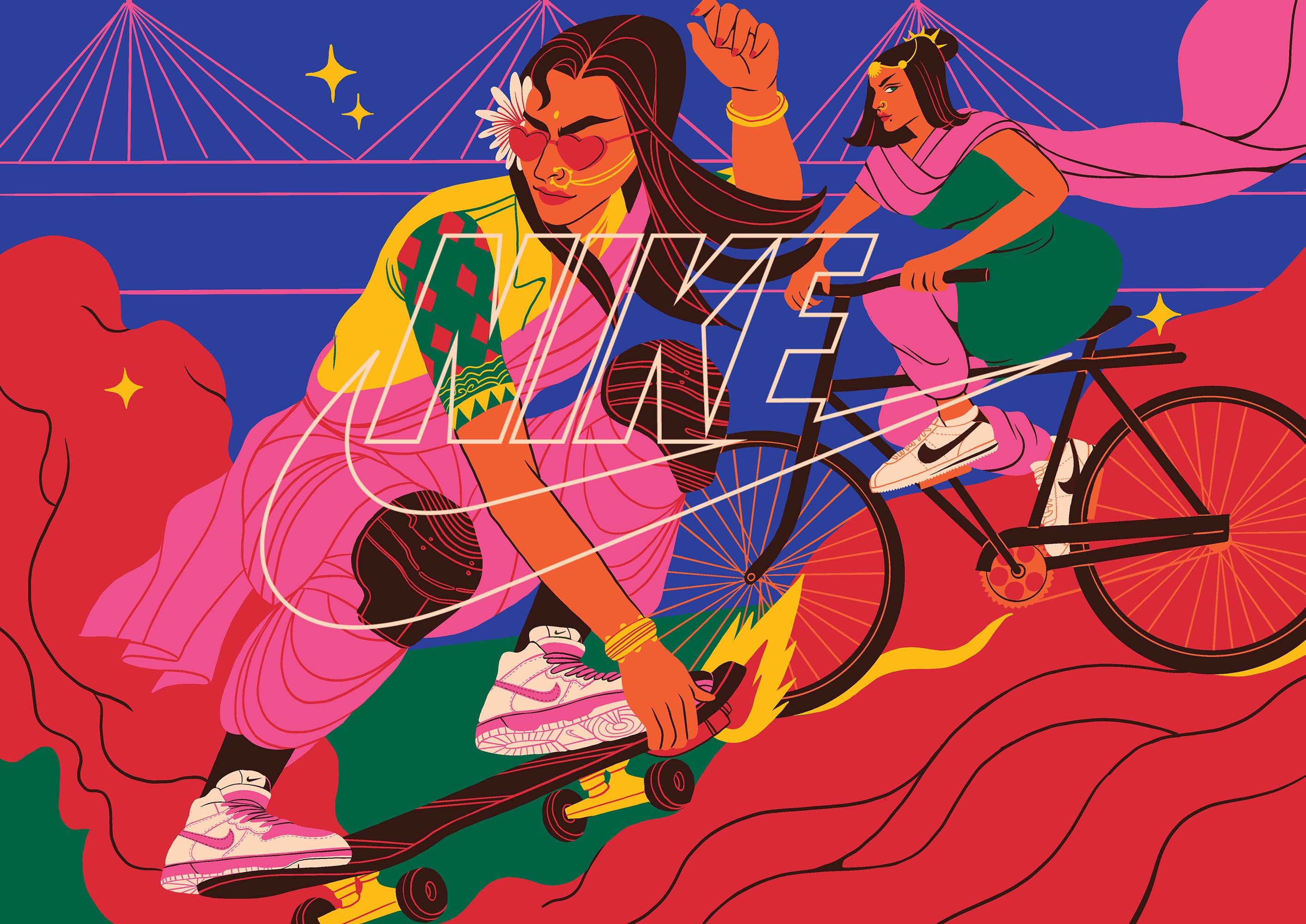 Nike by You has been, by far, the most defining experience for us. Nike commissioned us to create a series of twenty illustrations that would be merchandised for its first-of-a-kind personalisation service in India. The precise brief was to place Mumbai at the thematic centrepiece of the artwork.