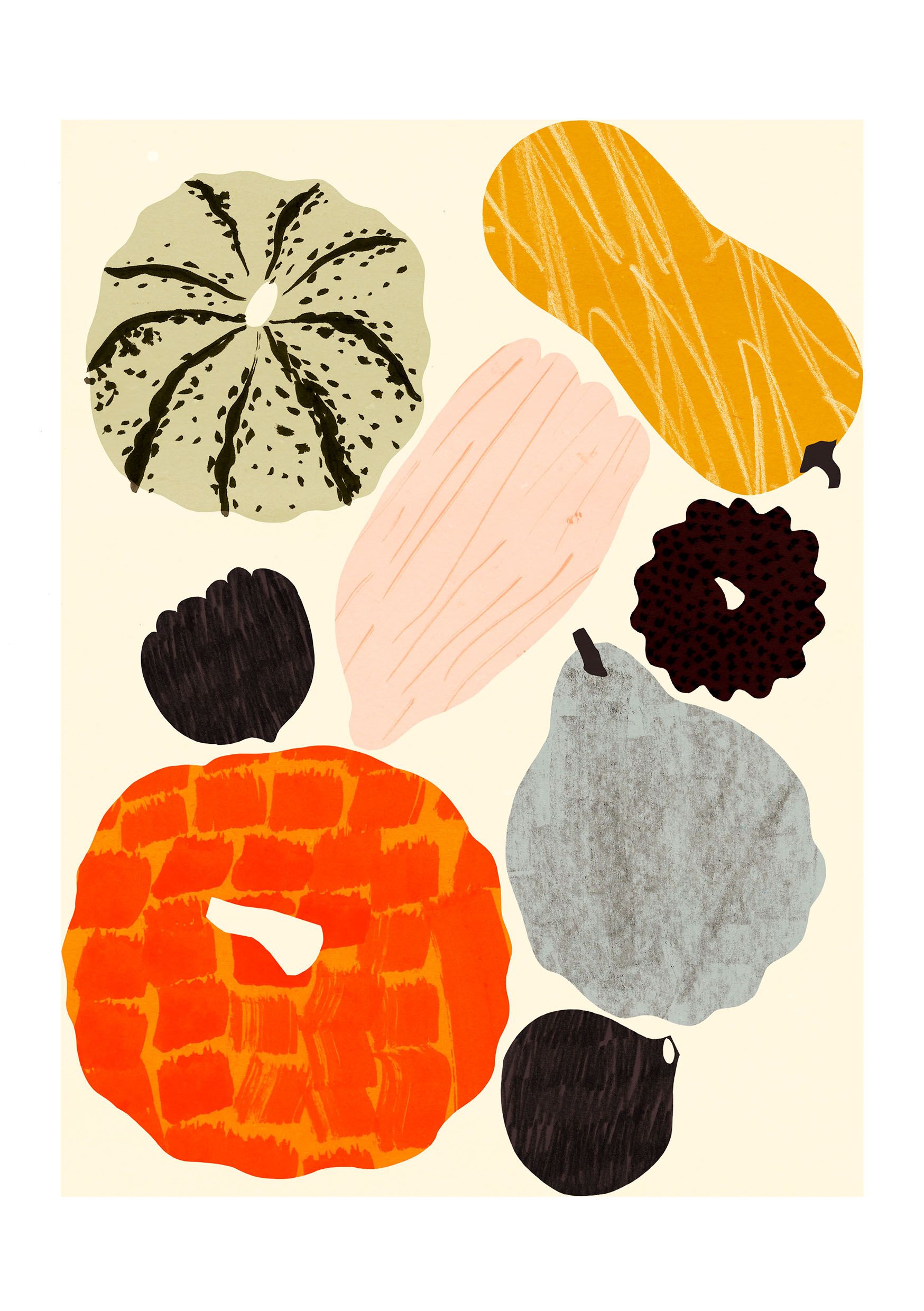 Last year your illustrations were featured in Miranda York’s book ‘The Food Almanac’. What was the process like working in this way? What do you need to consider when creating work for physical forms?
