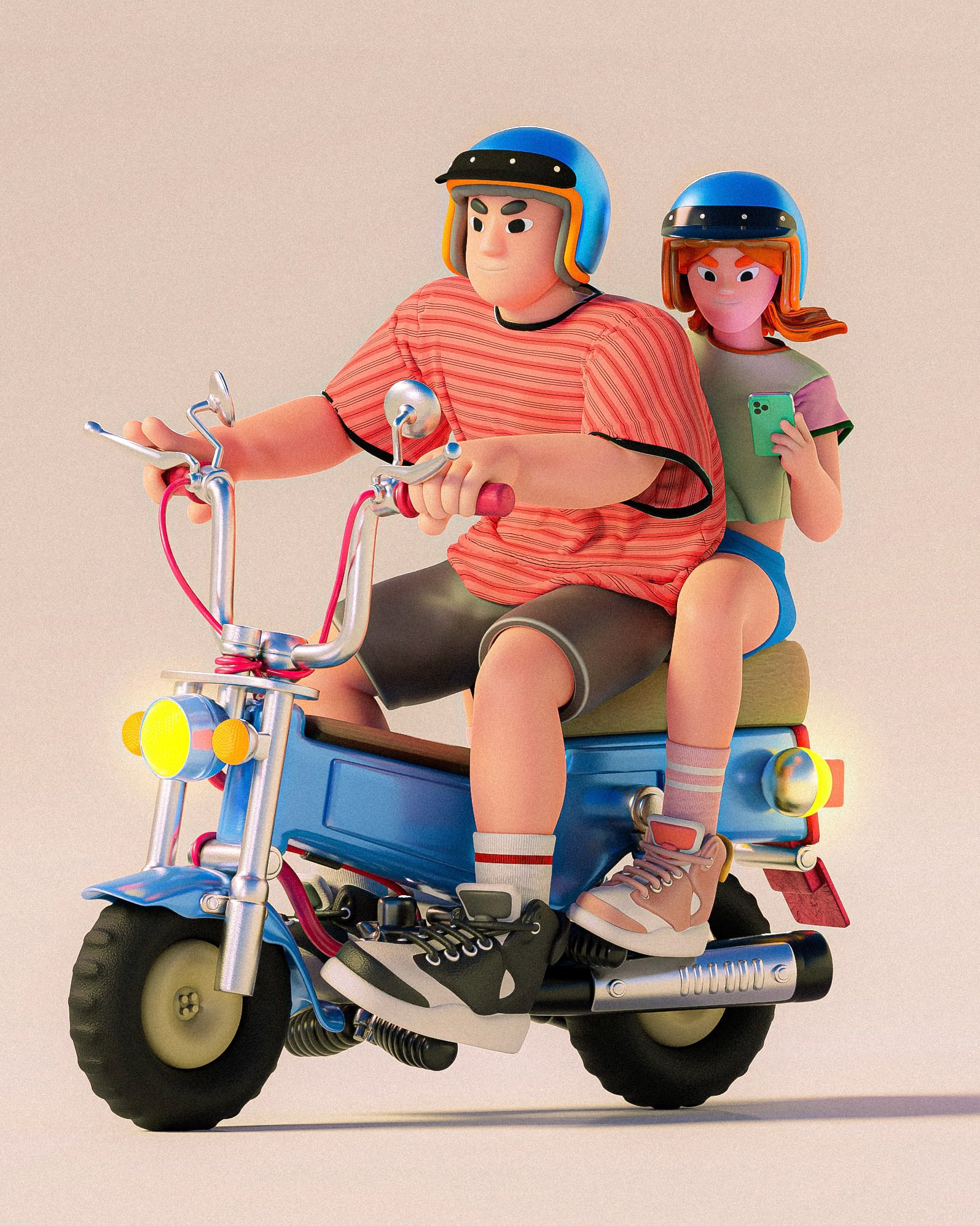 After university I took a 3D animation course in Barcelona. It was a different challenge, more focused on creativity, ideas, and storytelling. While I enjoyed the process, I realized that I felt freer in technology, whereas in the world of ideas, I sometimes felt constrained. However, I understood the importance of having a narrative goal in any creative work. I learned to model, animate, and light scenes, and I was drawn to the idea of creating something from nothing, making it look tangible with just a computer. That’s why my visual style has become closely linked to tactile materials and rounded proportions. I was inspired by studios like Pixar, Disney, Buck, Animade, and ManvsMachine, as well as freelance artists who developed their own style while working on commercial projects, such as César Pelizer, Zigor Samaniego, and AJ Jefferies.