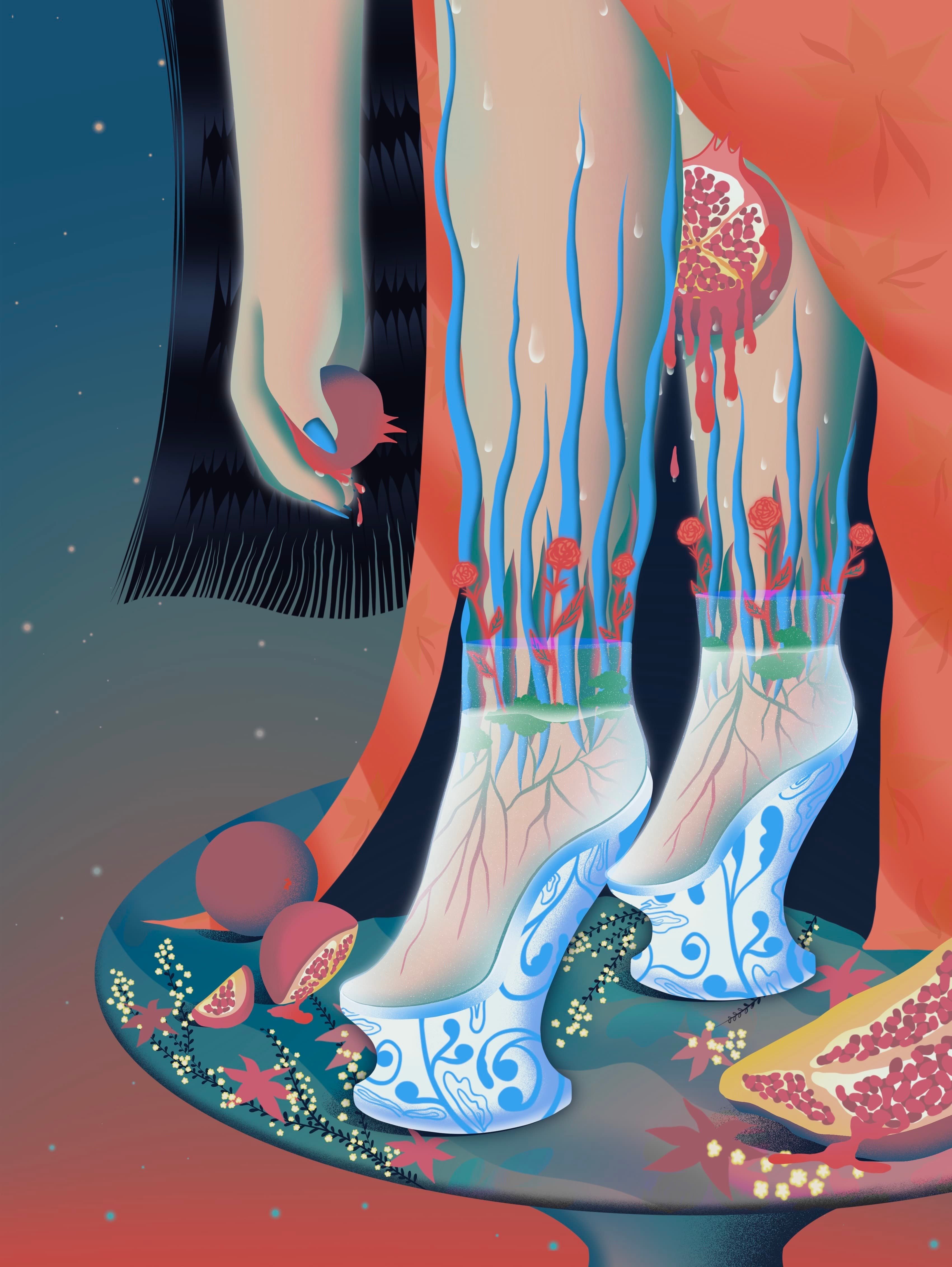 I believe my art can be interpreted in a variety of ways, which is exactly what I want it to be. It may not be so simple and straightforward that the essence of the work can be seen at a glance. However, I would say that my work is kind of like the mysterious oriental stories. Truth, which is mostly related to my cultural background, can be unveiled when the audience spends time observing, feeling and exploring. Oriental elements incorporated into my work, such as flowers, plants, artwork totems, are all wonderful resources that help my audience imagine and interpret.