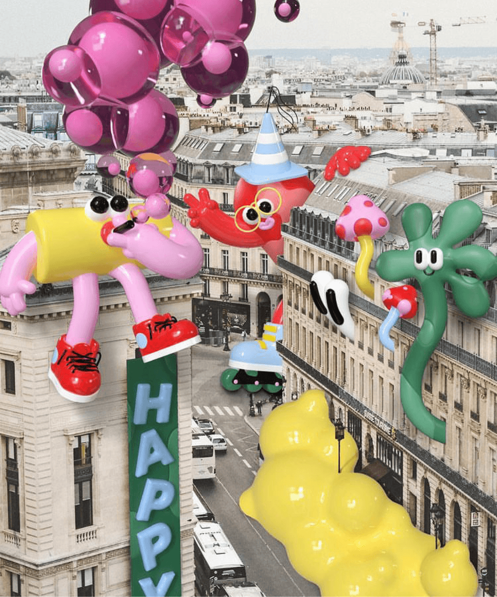 Hailing from The Netherlands, Eva’s graphic work has been seen in campaigns around the globe and here a group of her playful characters take over the city of light!
