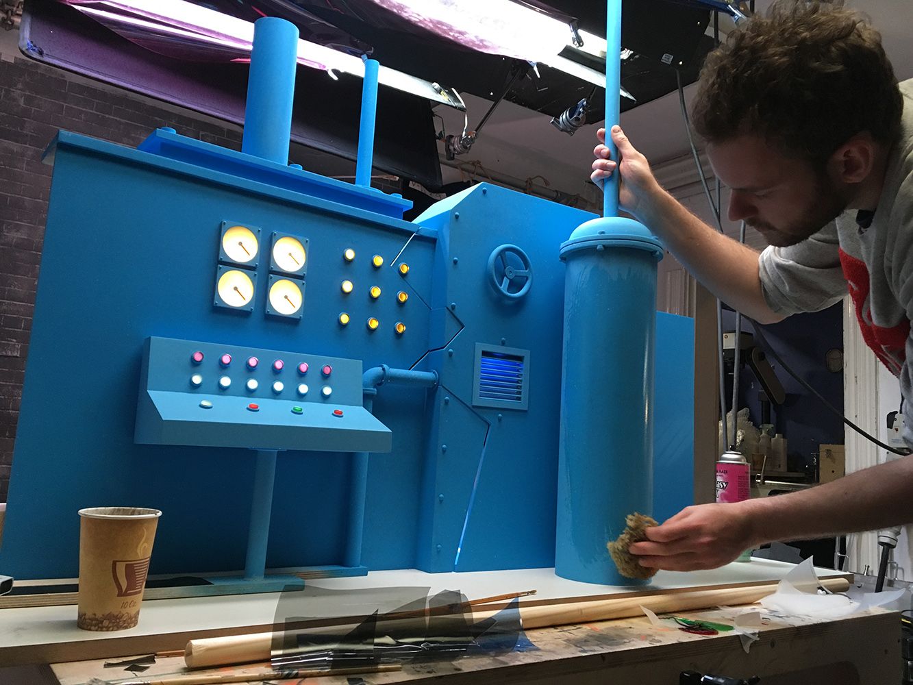 Everything was achieved in camera, brought to life using a mixture of hand puppeteered machines and stop motion, animated by Tim Allen (Isle of Dogs, Fantastic Mr Fox).