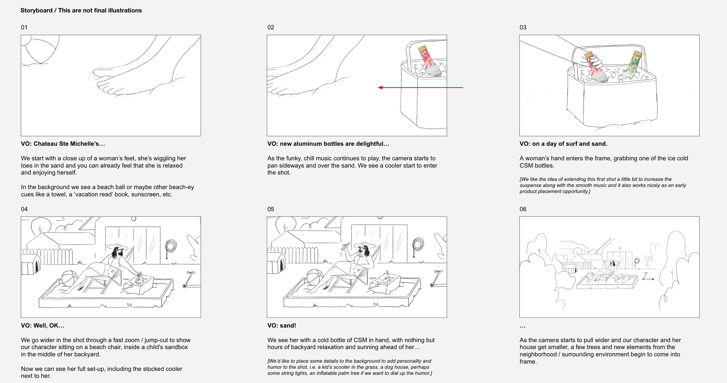 Below are some early explorations by Niceshit on how the world of Chateau Ste. Michelle was to come alive in illustration and animation. The characters who inhabit the land behind the mountain on the new product labels, and how Niceshit would work in relatable and humorous personality throughout, using subtle details and elements in both the characters and scenarios to bring it all to life.