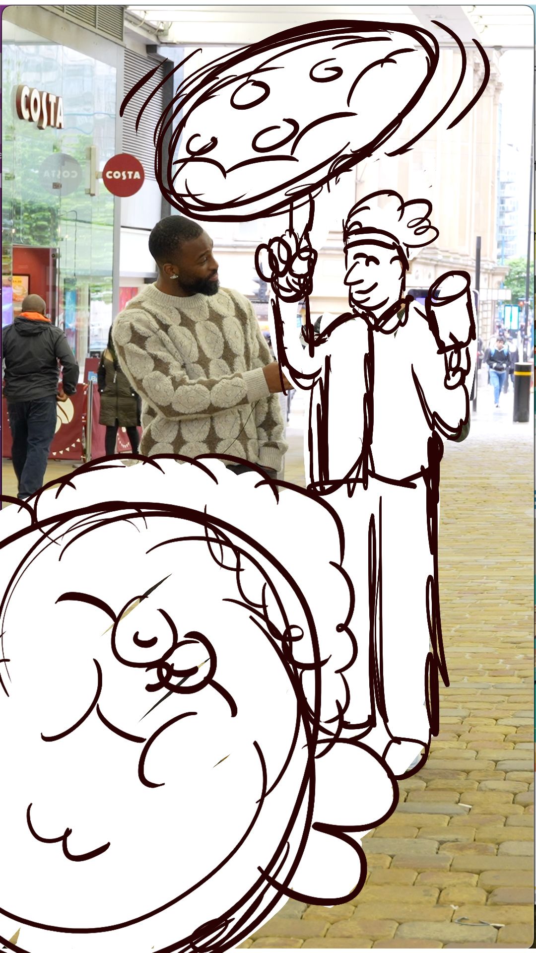 "The most fun was listening to what the guy had to say and putting our spin on what was being said. when he talks about "a bit of nonna" what does that mean to us? obviously him and the nonna having a bit of a moment whilst making the "proper pizza". he then mentions "WE would go surfing" so obviously he means him and the nonna!"