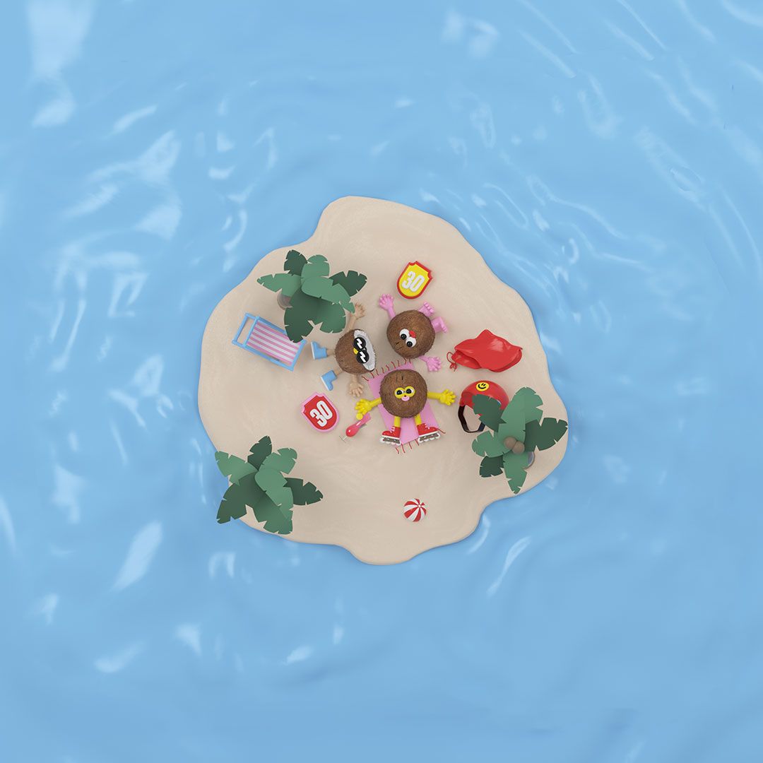 Each metaphor is immersive and grounded in the feeling a product gives the consumer (eg. ‘like an army of little fuzzy coconuts fighting against the sun’), with Eva’s task being to bring these to life using her cute but quirky characters and environment design.