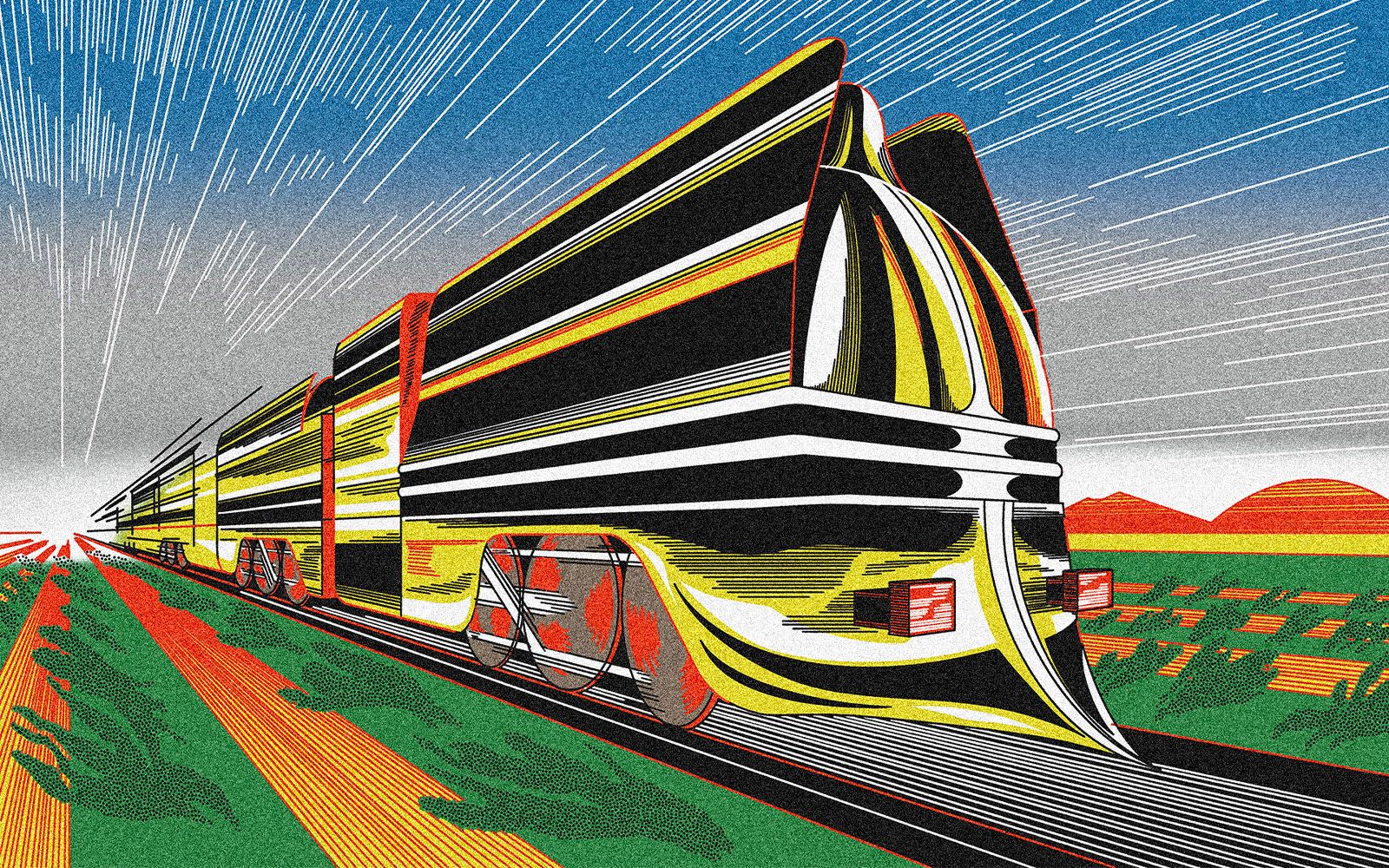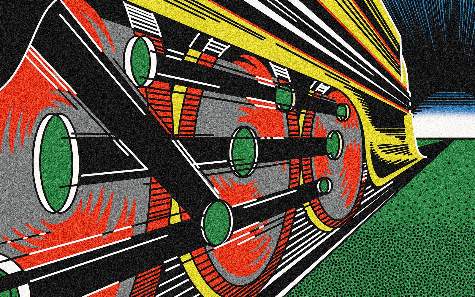 Crafting a series of images for magazine L’Hémicycle, Thomas designed vibrant and nostalgic illustrations that have an almost pop-art aesthetic and explosive energy. The magazine tells the story of the construction of the railways in France and although a subject of the past, Thomas imbued his designs with a futuristic, strikingly modern style.