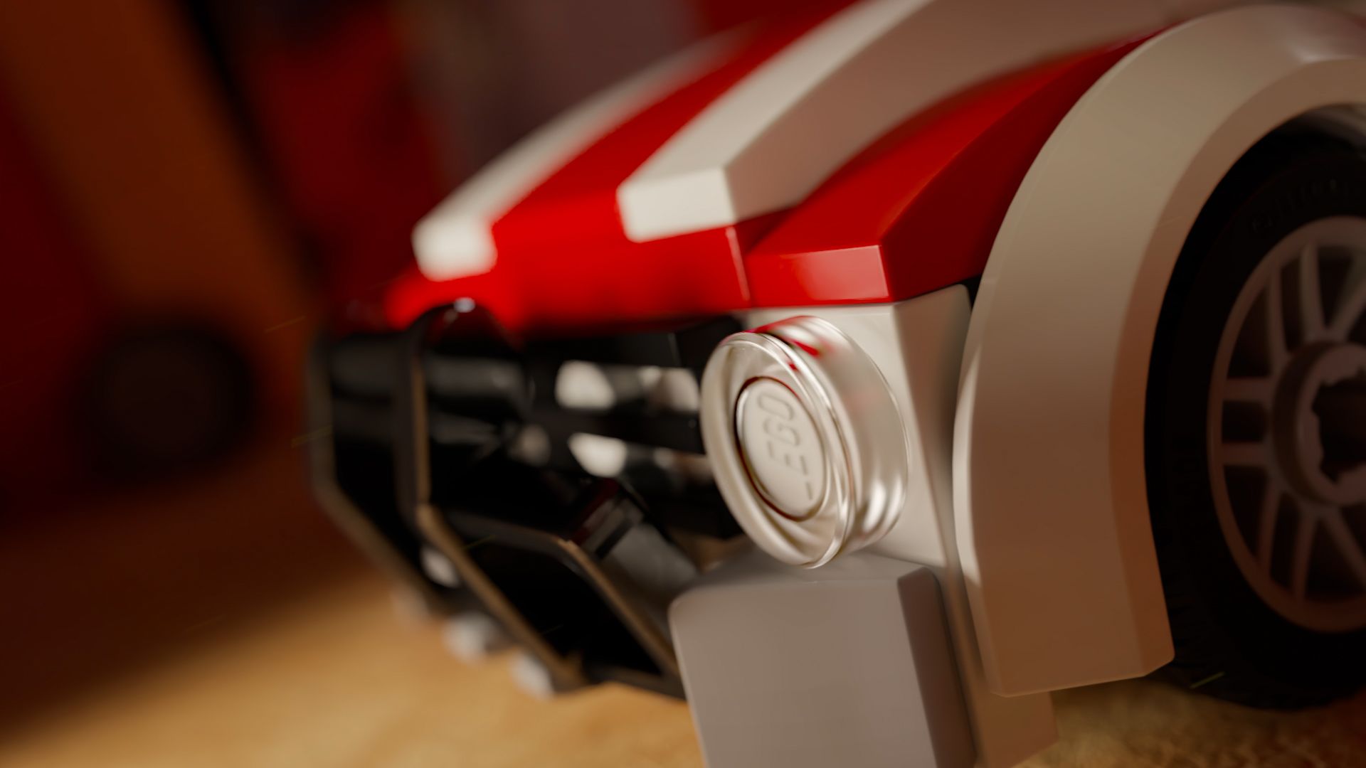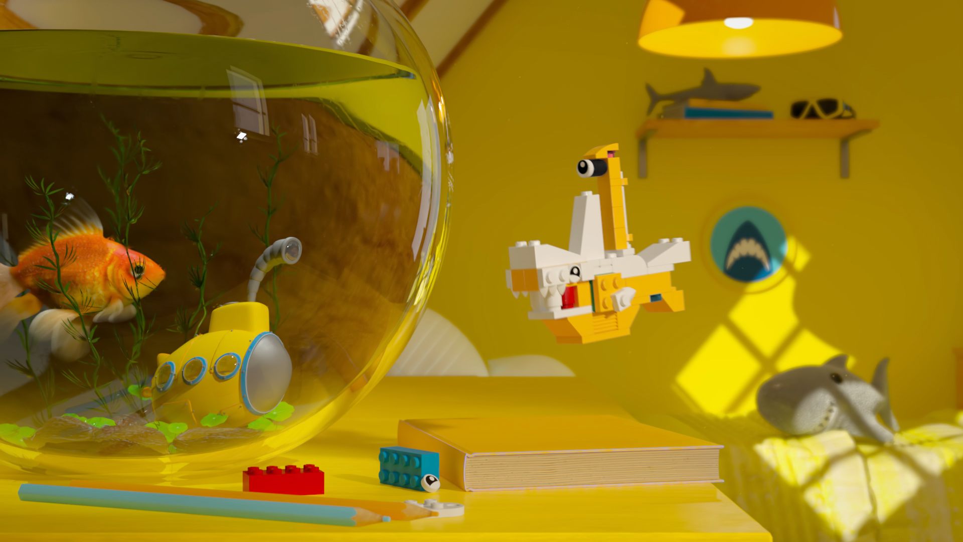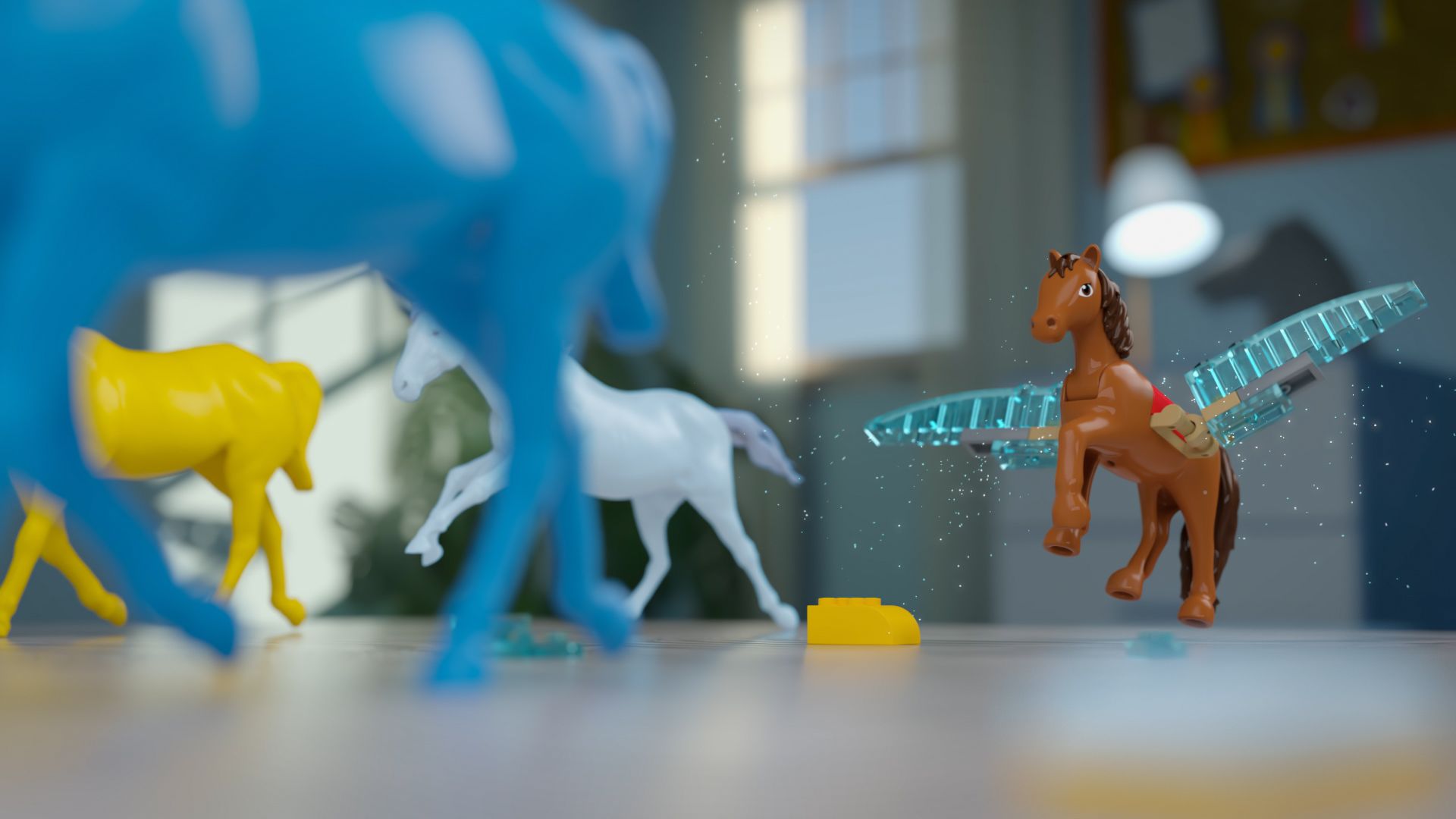 Mr. Kaplin created a fairly realistic background texture that felt like a real kids room – not quite as harsh as “photo-real” but something believable whilst the LEGO characters integrated into the background.