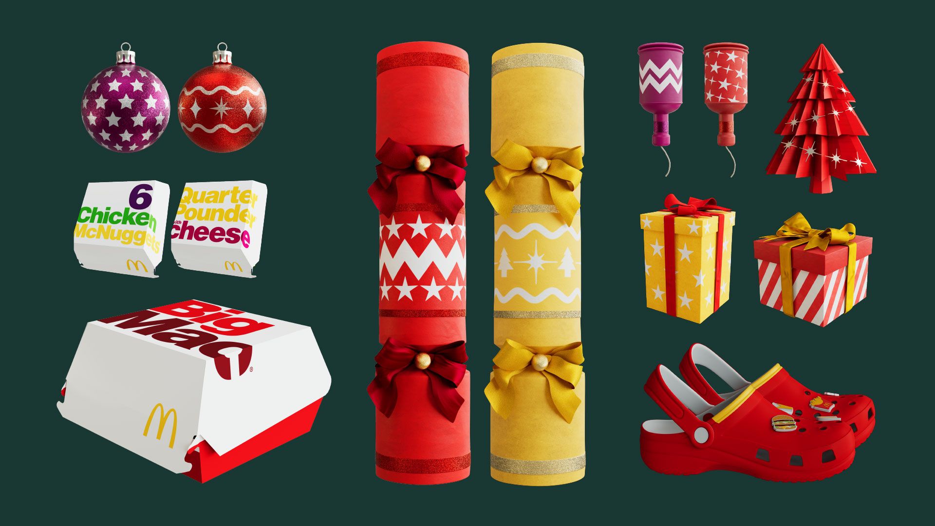 Working with Leo Burnett and taking inspiration from classic theatrical ensembles, Design Lad crafted a visually rich animation that dances you through the sequence, with each characterful dancing bauble, Christmas cracker, or chicken nugget box designed to evoke delight and maximalism as the prizes are spotlighted.