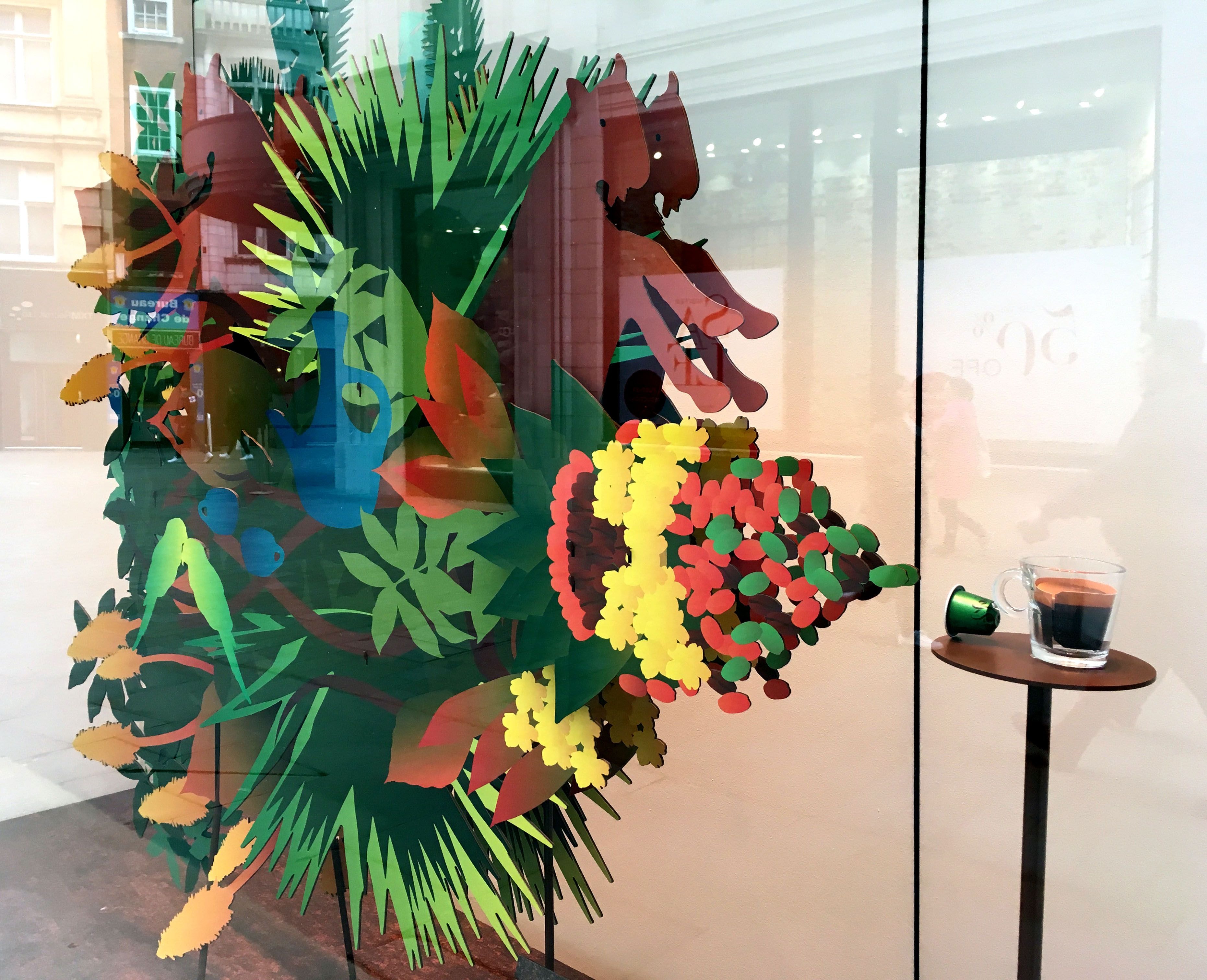 Mariana’s botanical-heavy illustrations were seen on the packaging, as animated visuals across social and digital out-of-home adverts, as well as recreated as large scale paper-cut installations in the window display of their flagship stores globally (located on Regent Street here in London).