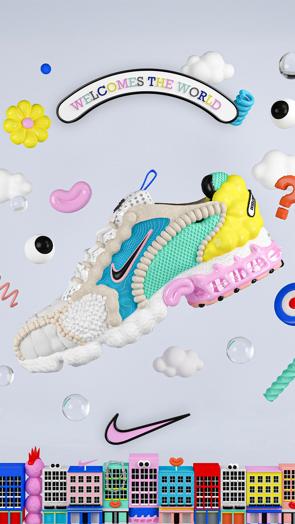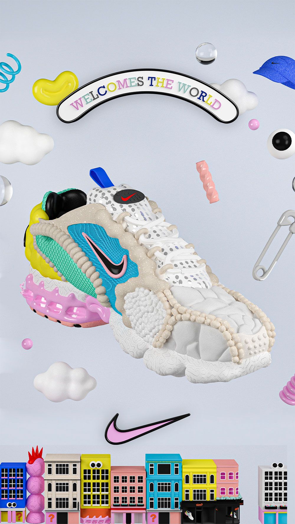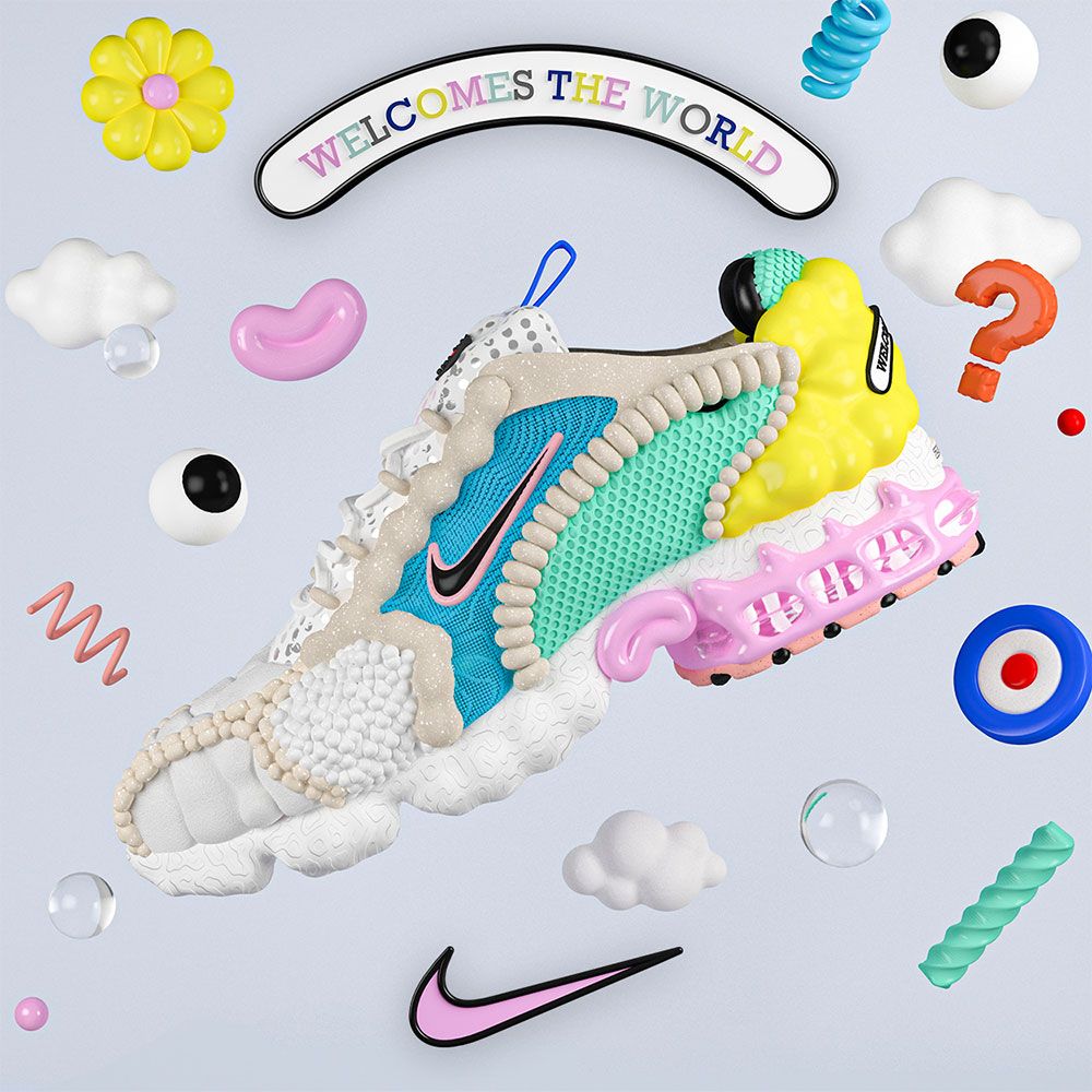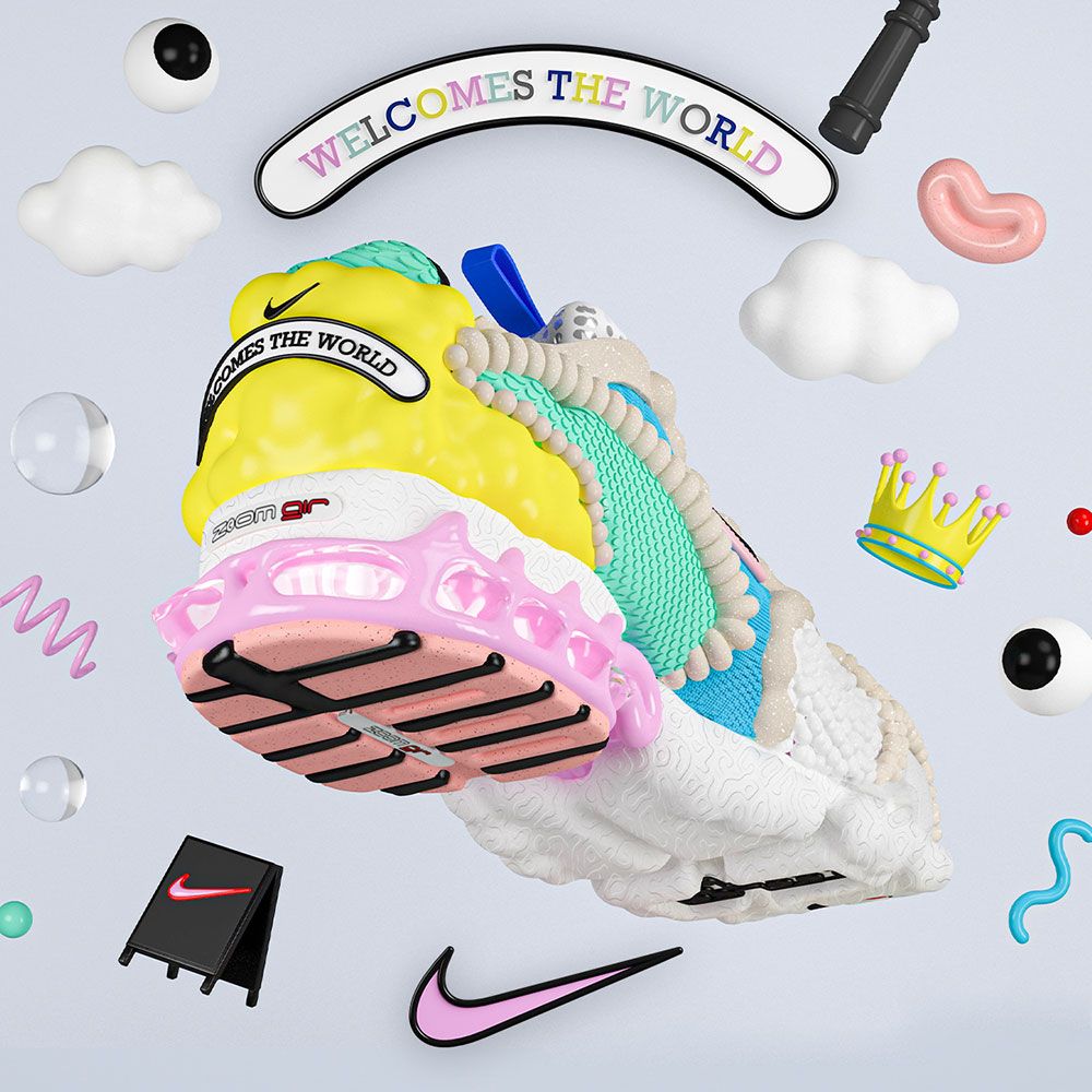 Creative Agency, Breaks approached Eva as they wanted her unique vision to create some characters and visuals for a 3D interactive, gameified environment for the launch of the new The Zoom Spiridon Cage 2 ‘Carnaby’ shoe <– explore the interactive world here!