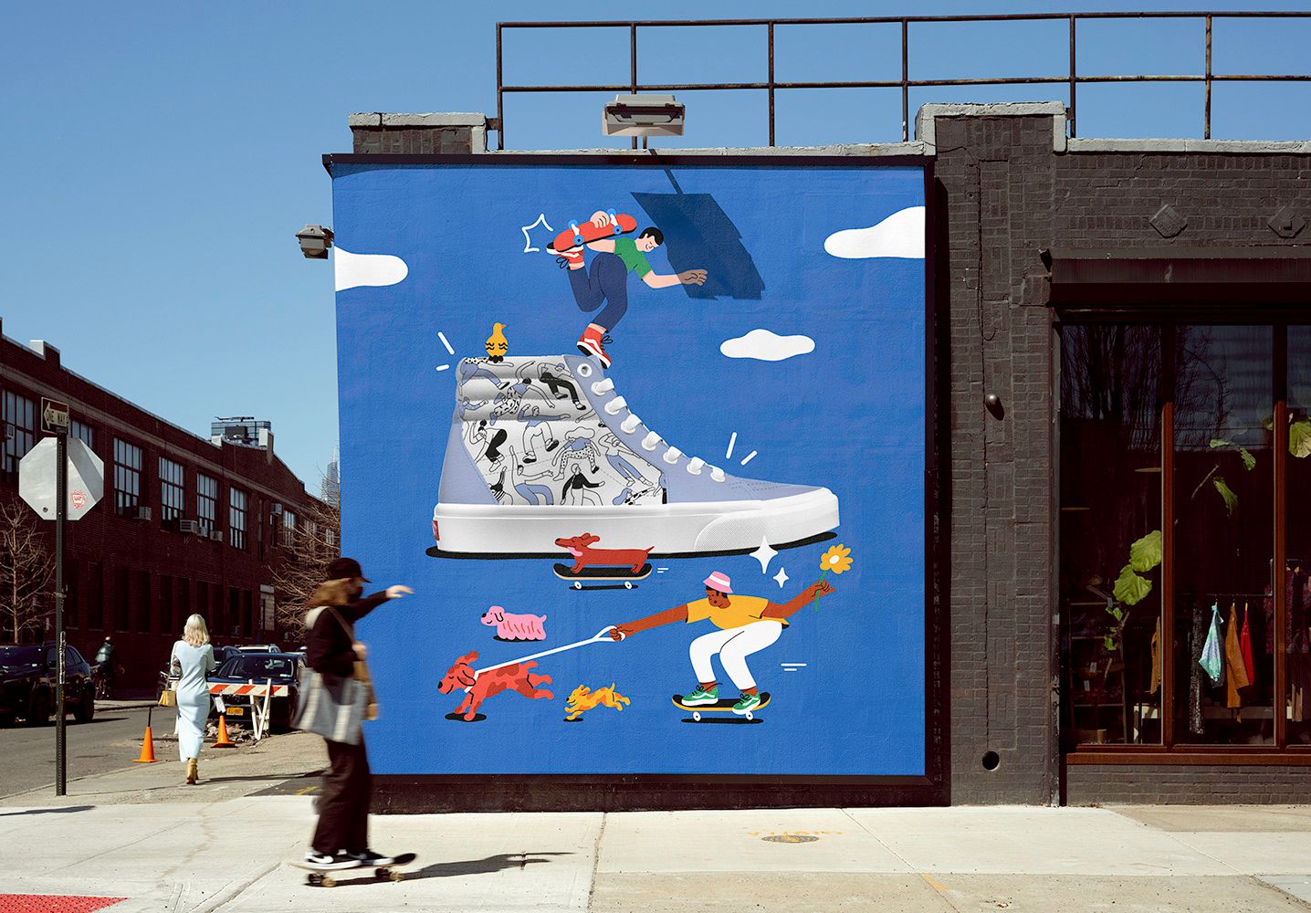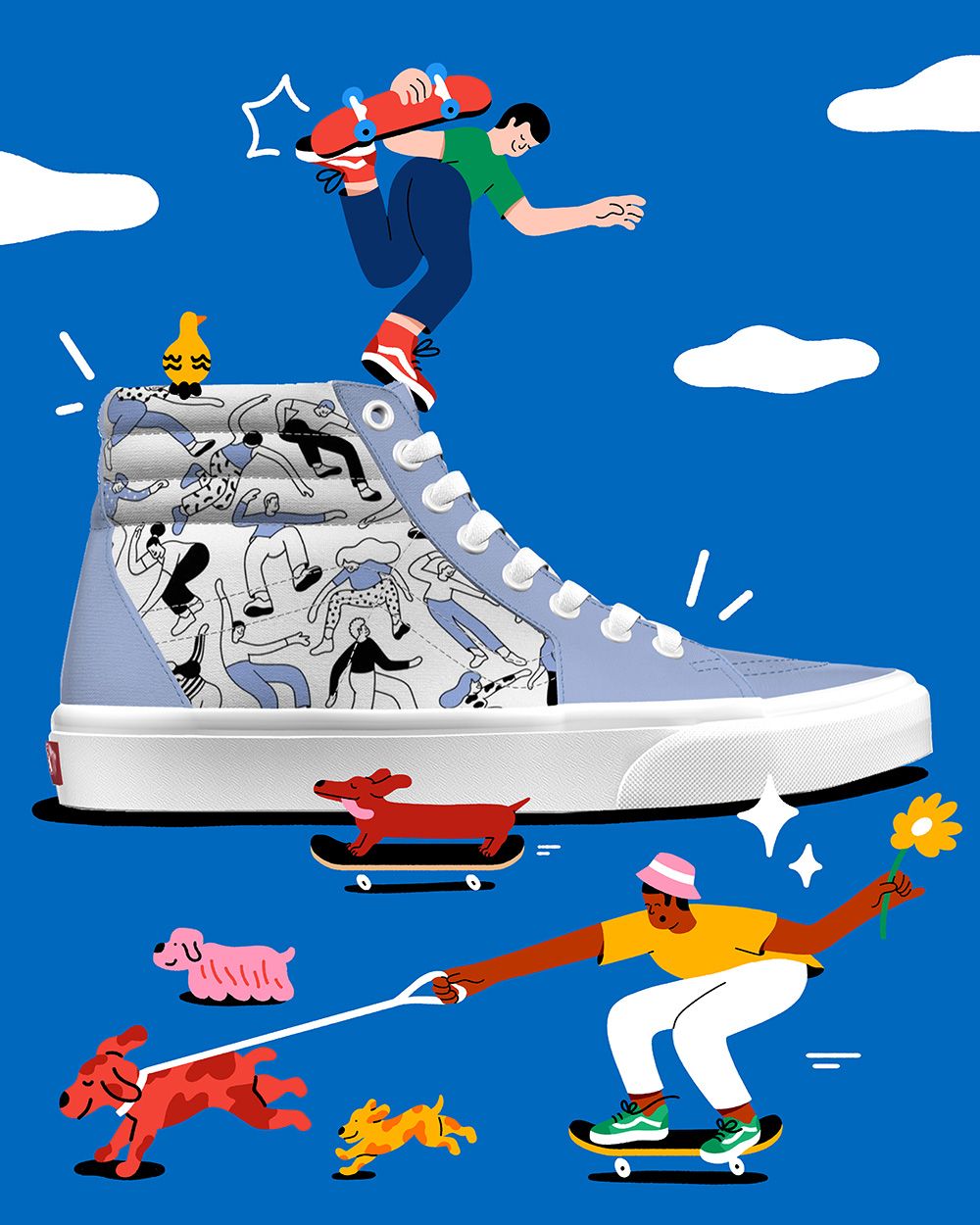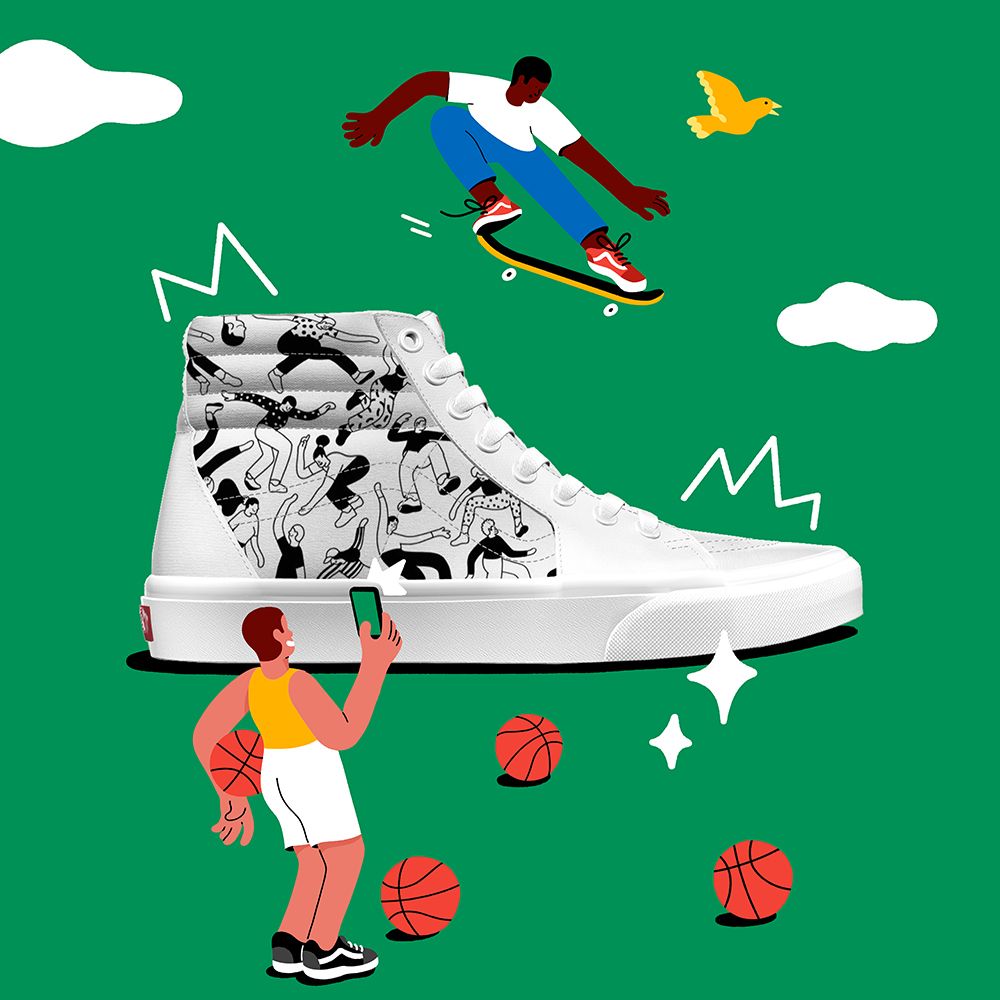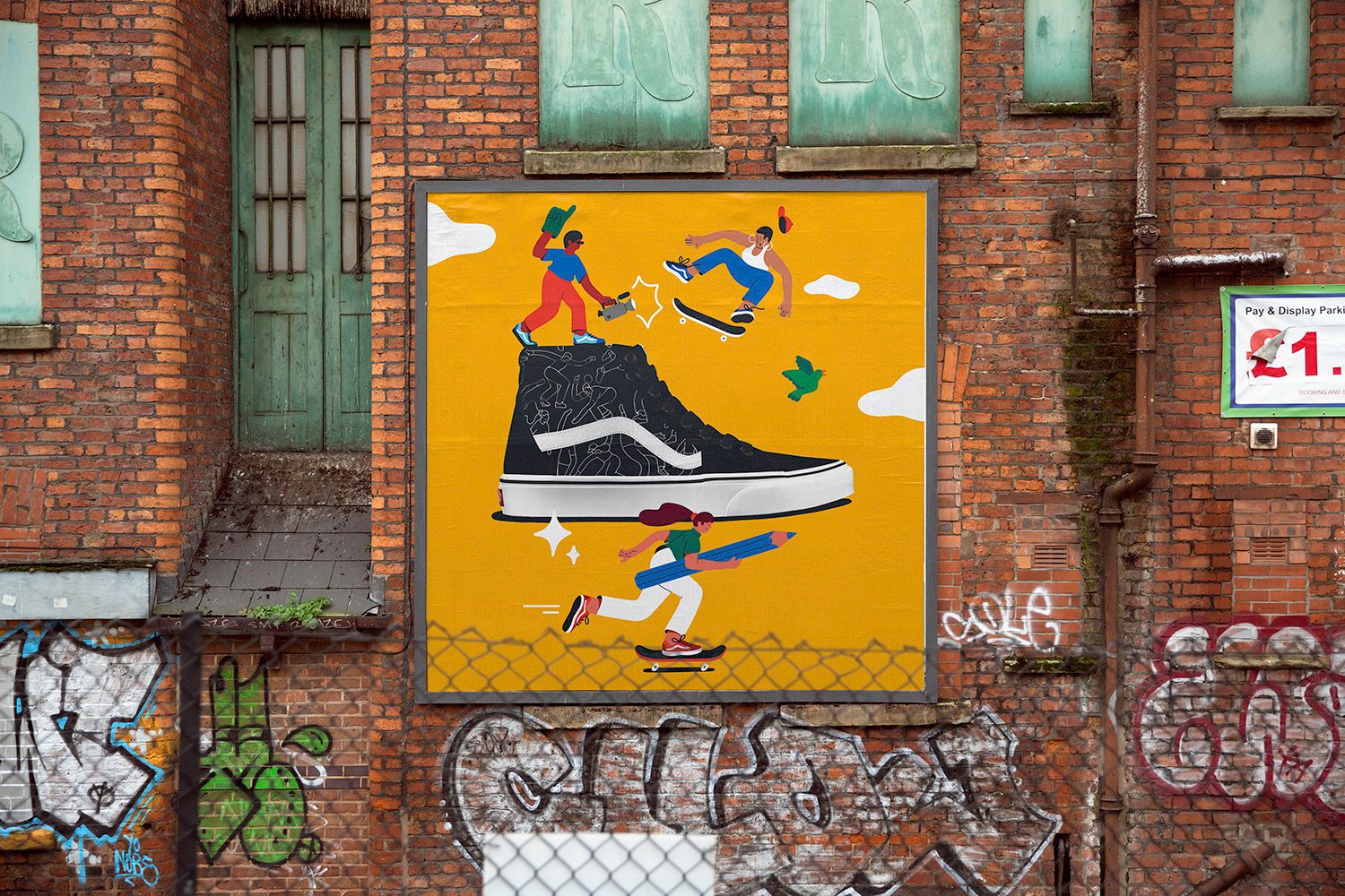 Creating a pattern of skaters but removing the skateboards is a way to visualise the essence of Vans and focus on its impact on the community of skateboarding as well as the wider world, celebrating the activity which is a way of life for many and is endlessly inspirational for Peter.