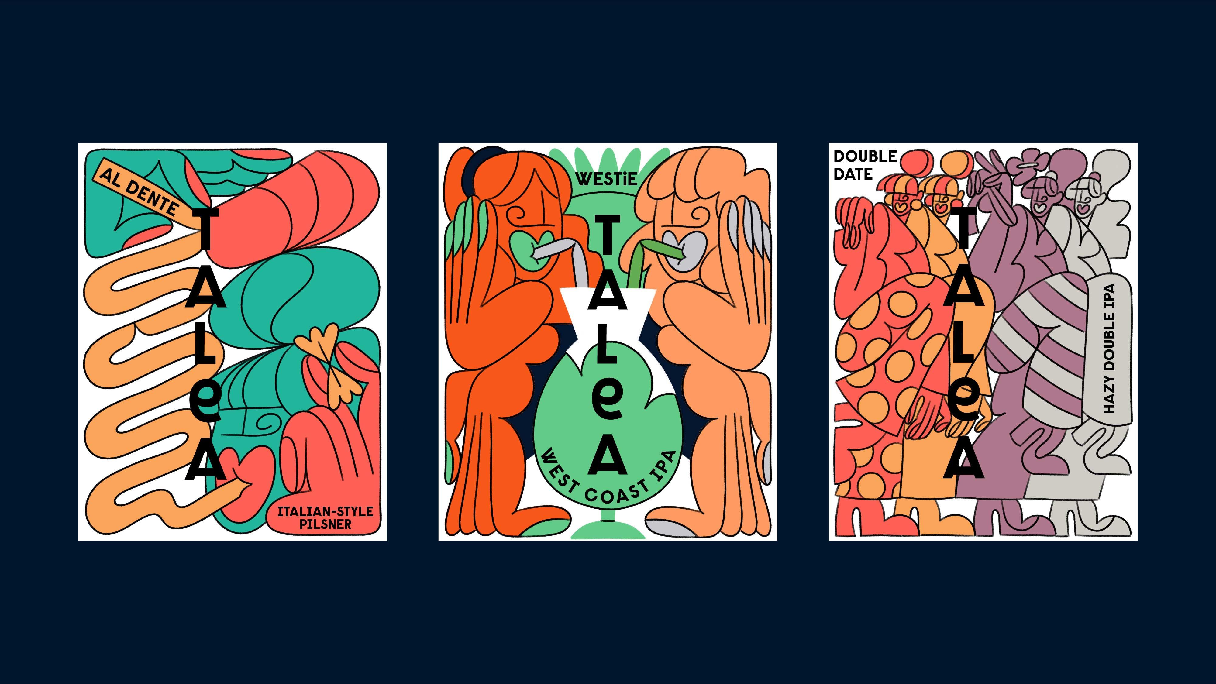 Meredith worked her vibrant colours and confident shapes into craft beer label proposals, inspired by female run brewery 'Talea' in Brooklyn.