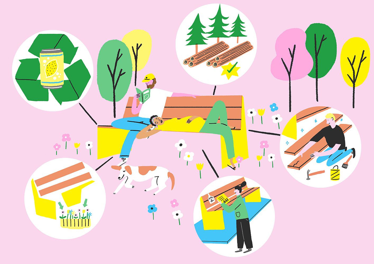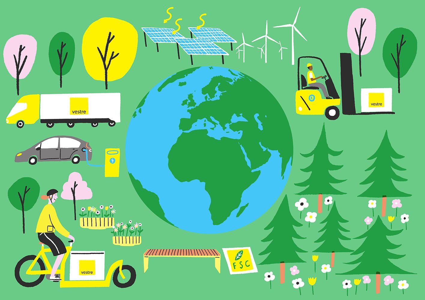 Illustrations for Norwegian furniture company Vestre's sustainability guide