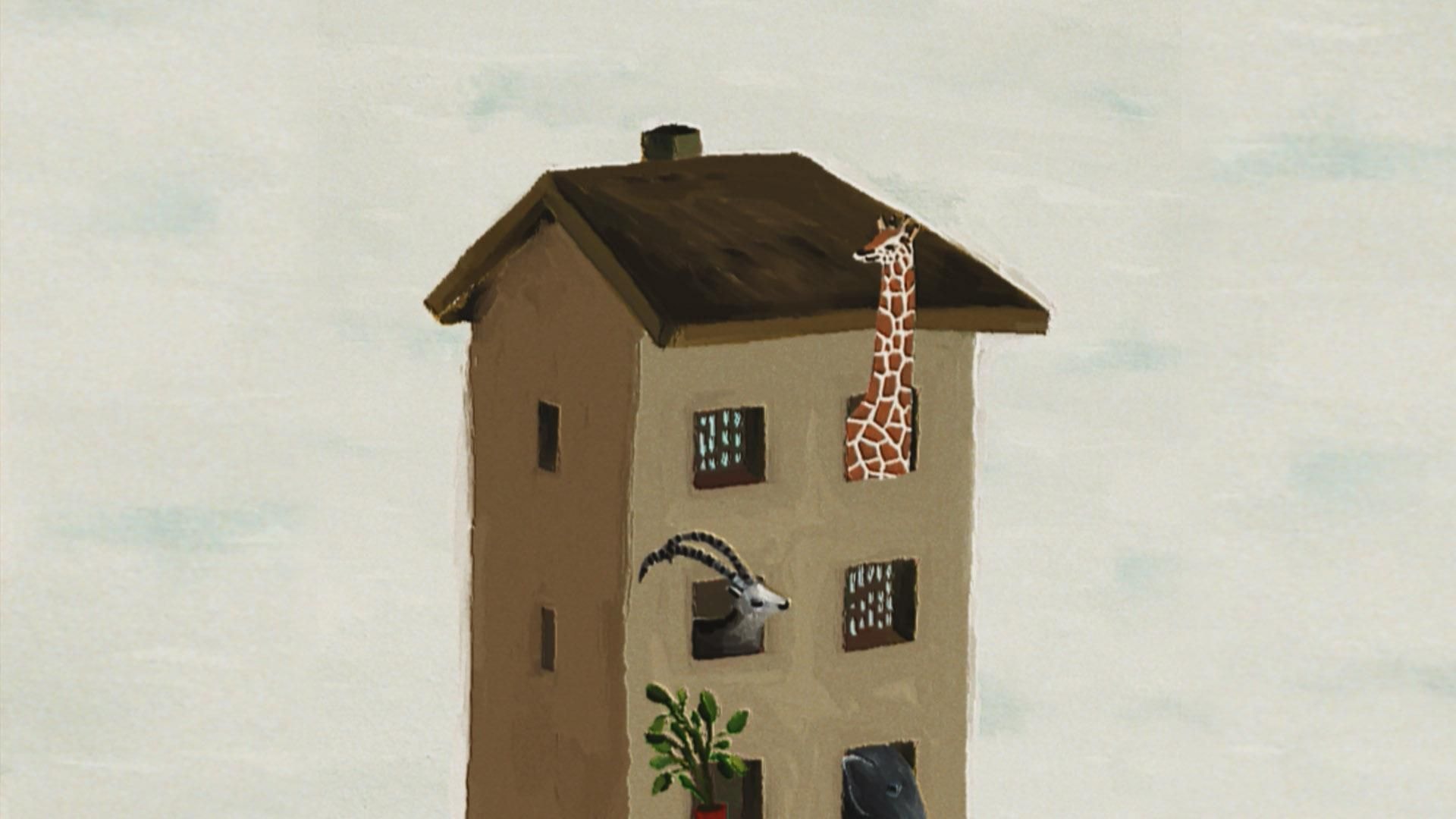 The animation shows a house of many floors filled with various animals, nature and other fantastical items. Mahboobeh is inspired by her experiences of the world and aims to communicate her view point through the blurring of the line between real and imaginary.