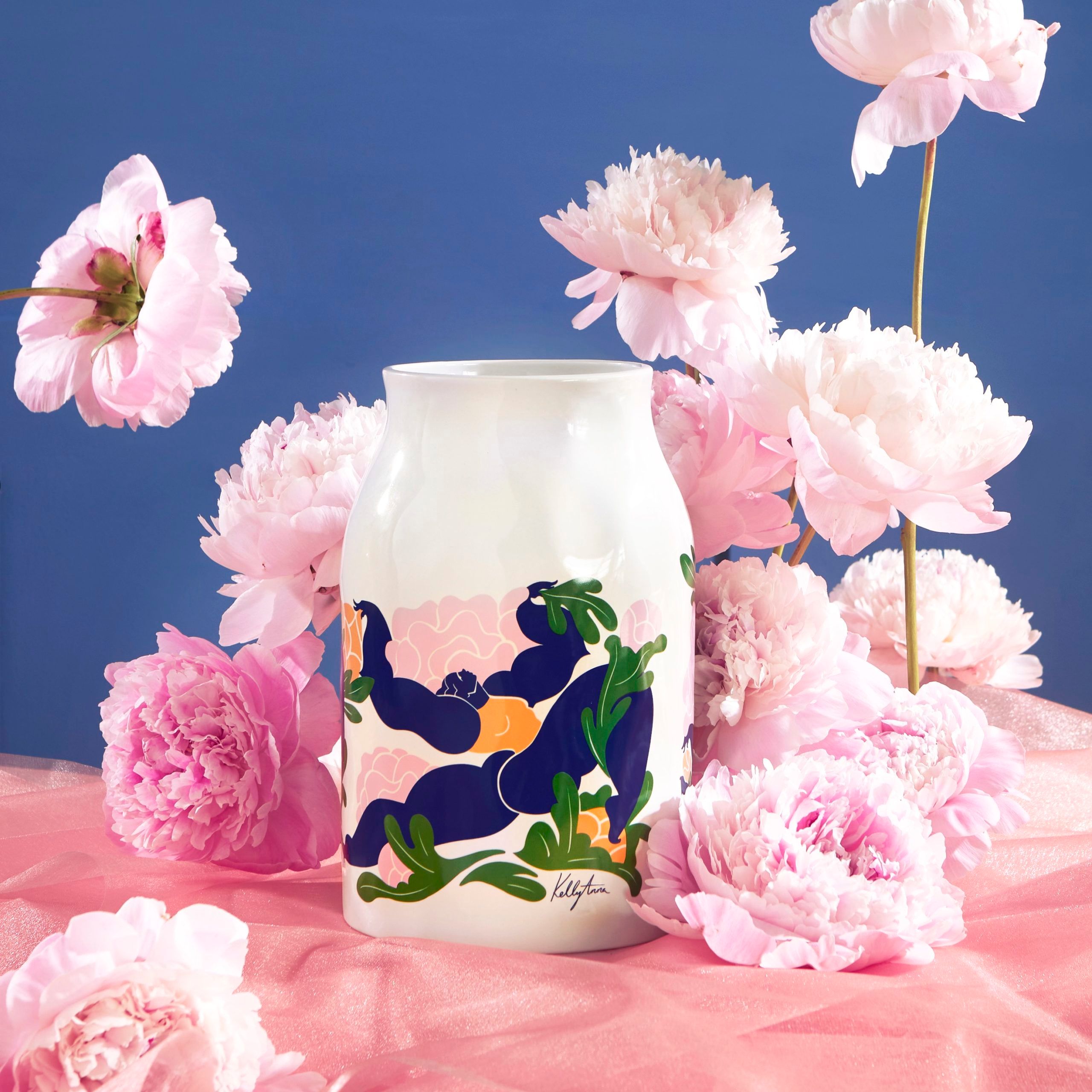 Kelly-Anna used her bold illustrative style to emphasise the abundant blooms, infusing a sense of movement into the designs, which were used for the release of exclusive vases, gift cards and Ocelot chocolate bars. Collaborating with the Bloom & Wild team, Kelly-Anna worked to create an elegant vase that perfectly compliments the peony bouquets while reflecting her empowering trademark style.