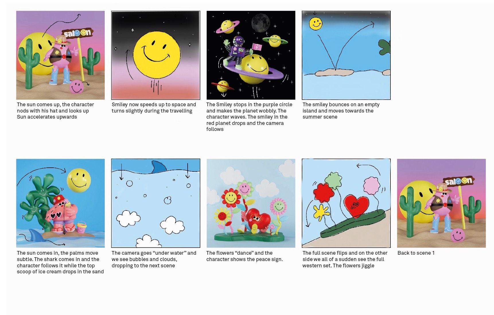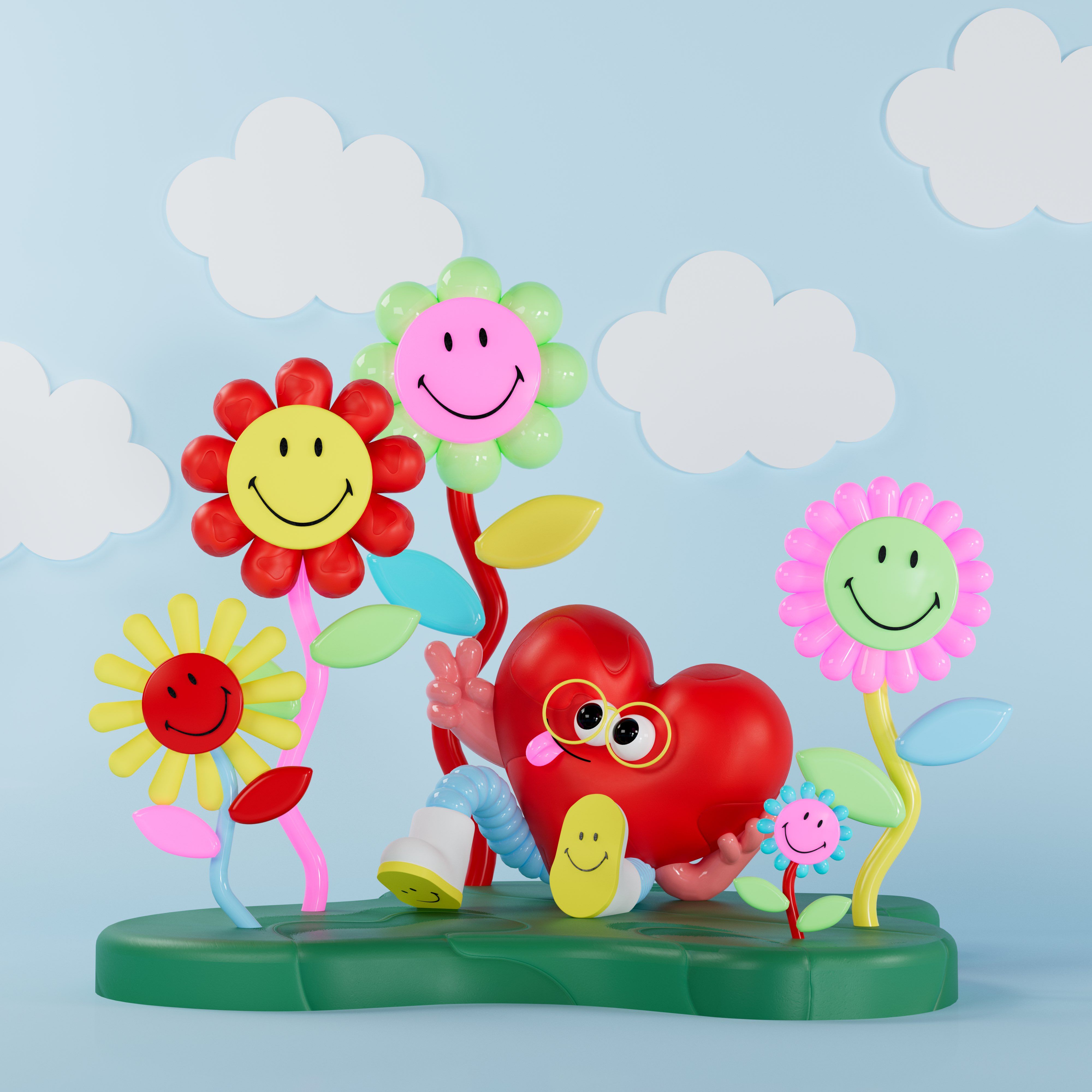 Eva created four characters for brand Smiley, the main sponsor of the OPEN FILE exhibition in Shanghai. Working with the brand, Eva created a 'Smiley world' where the audience could interact with the artwork and relax. The characters were created into physical sculptures and the final animation was screened alongside.