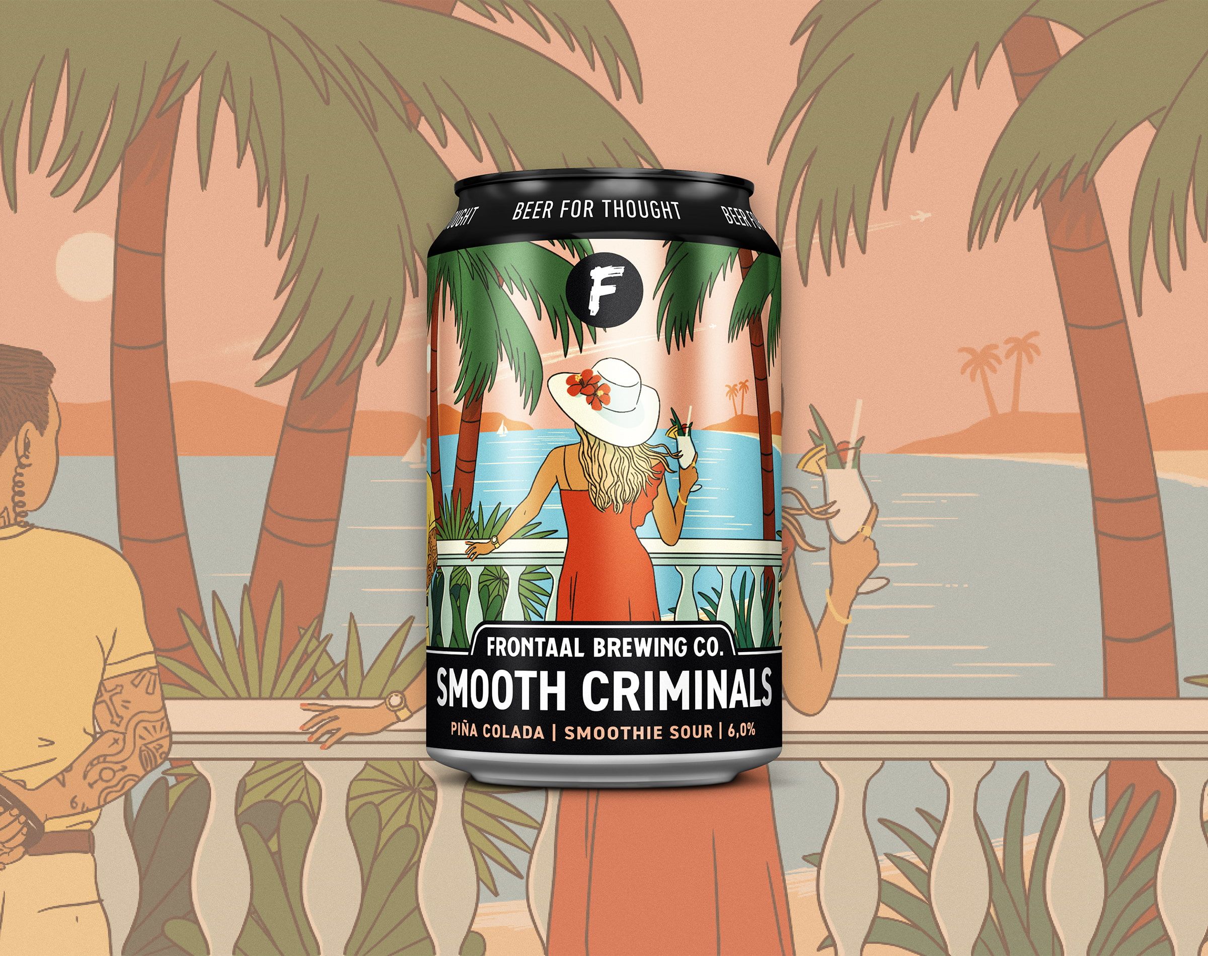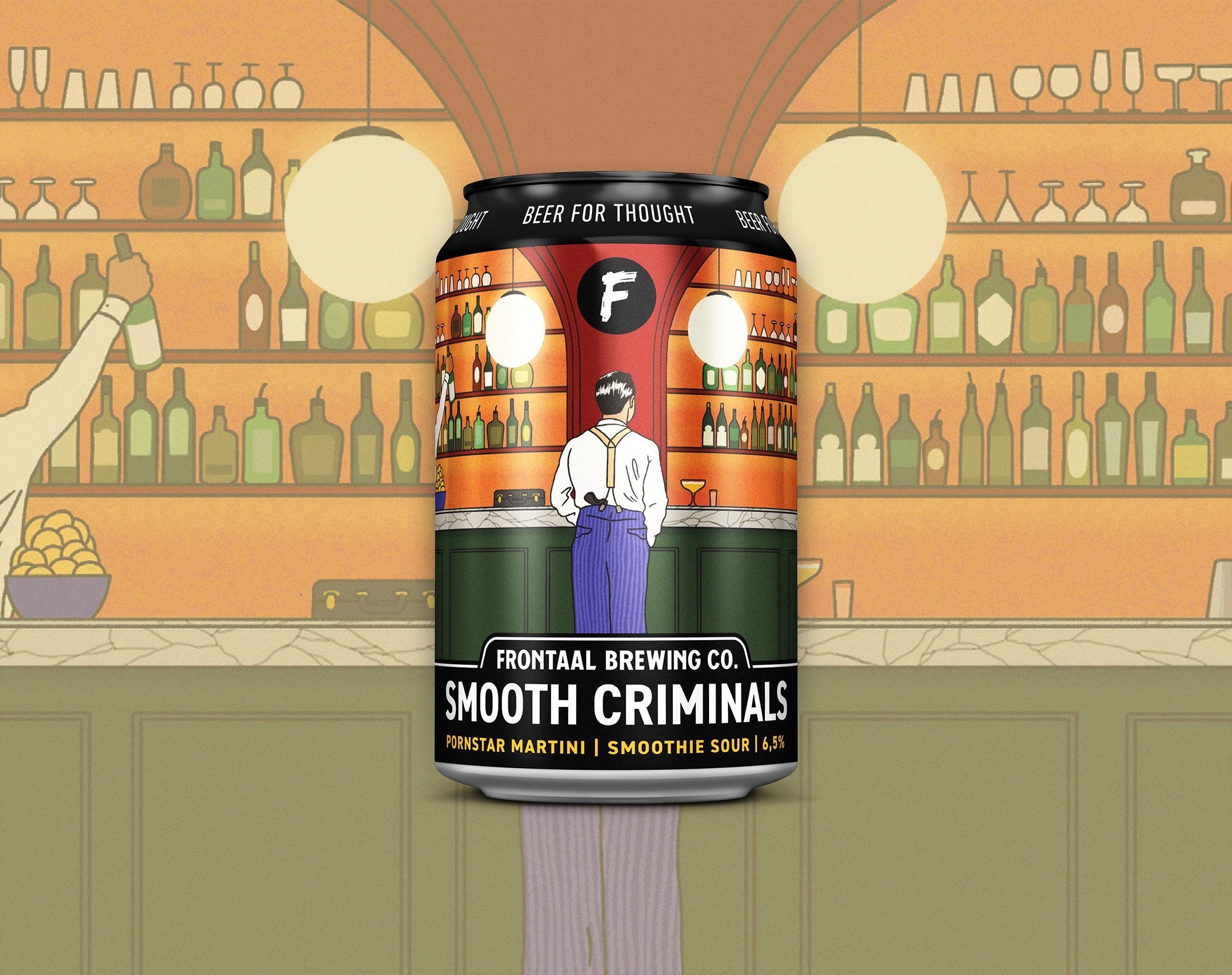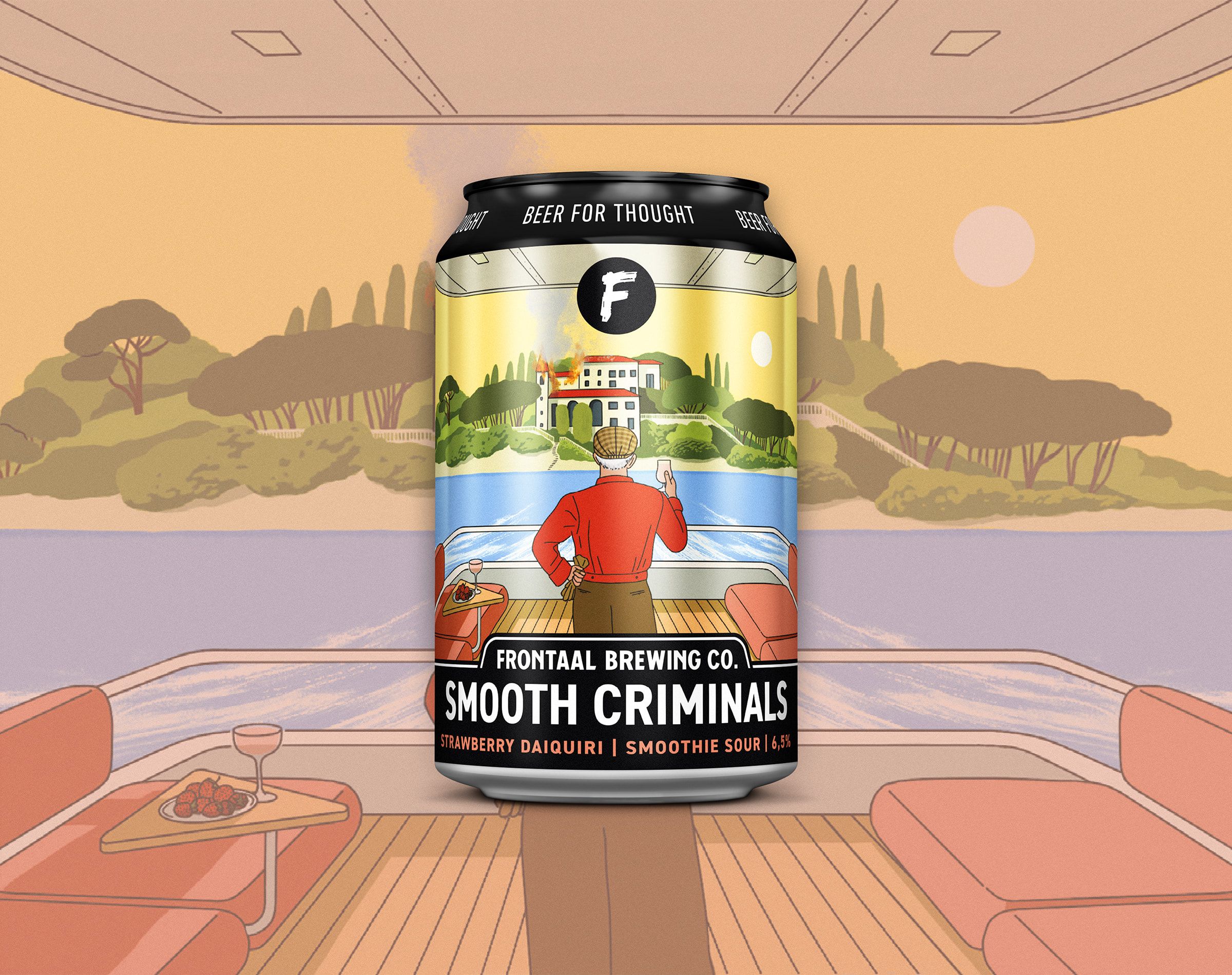 Partnering with Frontaal Brewery, Maaike crafted four label illustrations for Frontaal’s ‘Smooth Criminals’ line of drinks. A brand that takes a playful approach to their flavours and label designs, Maaike’s illustrations inject mystery and narrative in each can, embodying the star ingredients alongside an intriguing central character.