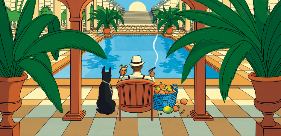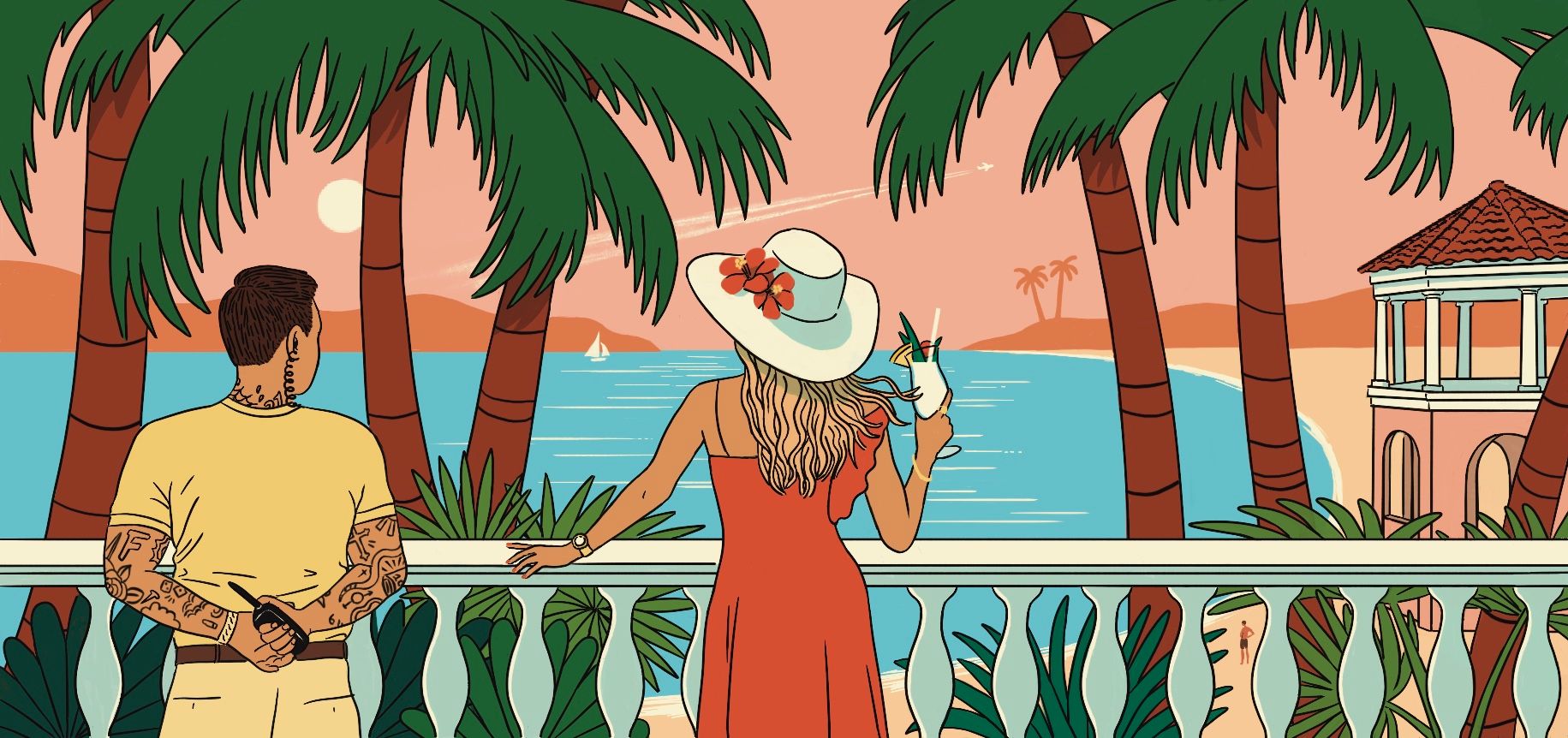 Depicting a range of tropical and luxurious locations, Maaike's designs glow with an inner warmth and the subtle nod to the 'criminal' play on words hidden discreetly within the design.