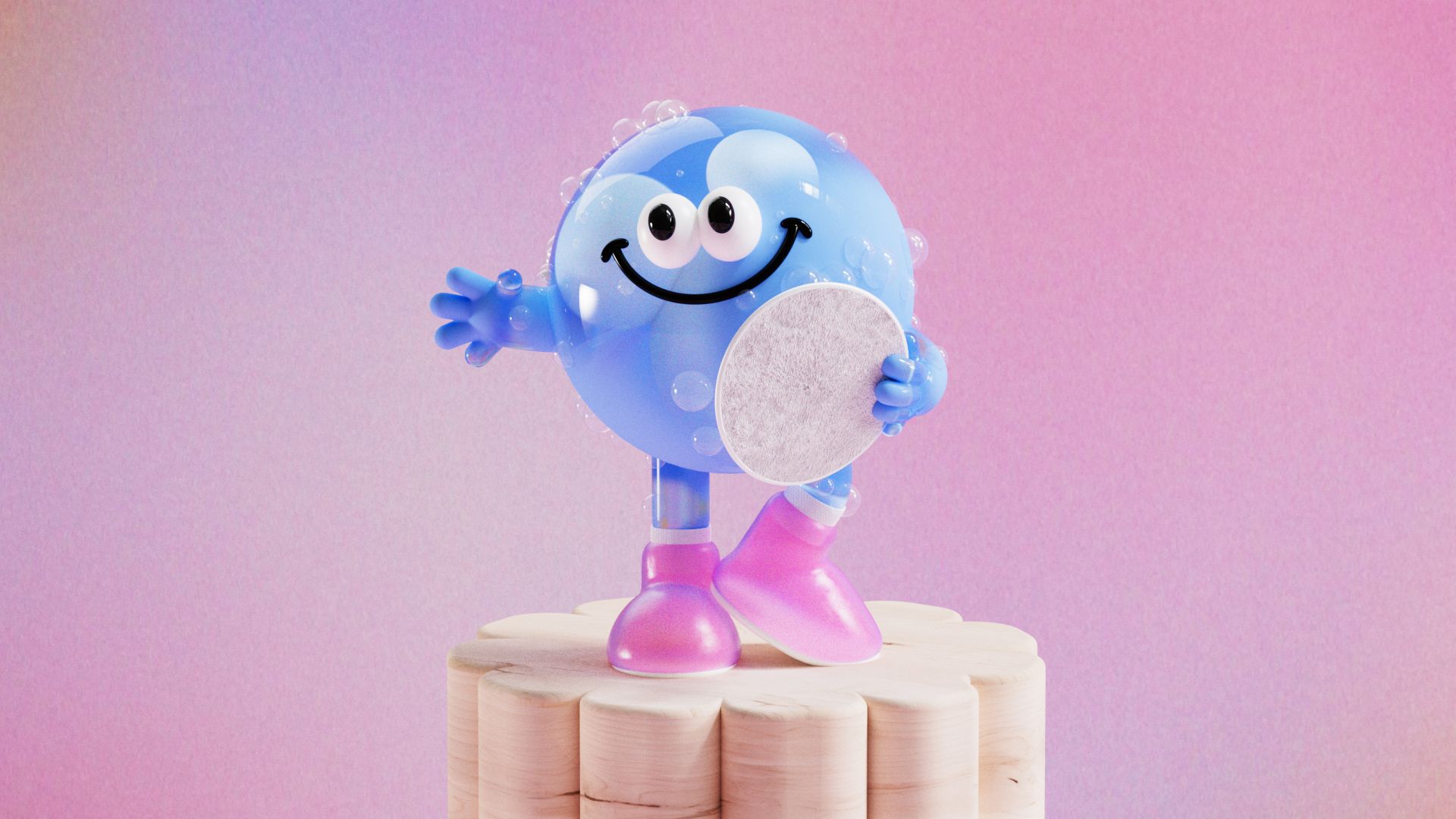 Known for her characters full of joy and life, Eva’s approach to the design of these mini Micelles contended with how to make tiny transparent bodies into true scene-stealers in the sunny live-action environment. The Micelles would also have to show up in two distinct states: pristine from the bottle, pre-cleanse and post-cleanse, bellies full with all the end of the day or post workout dirt and make-up they absorbed.
