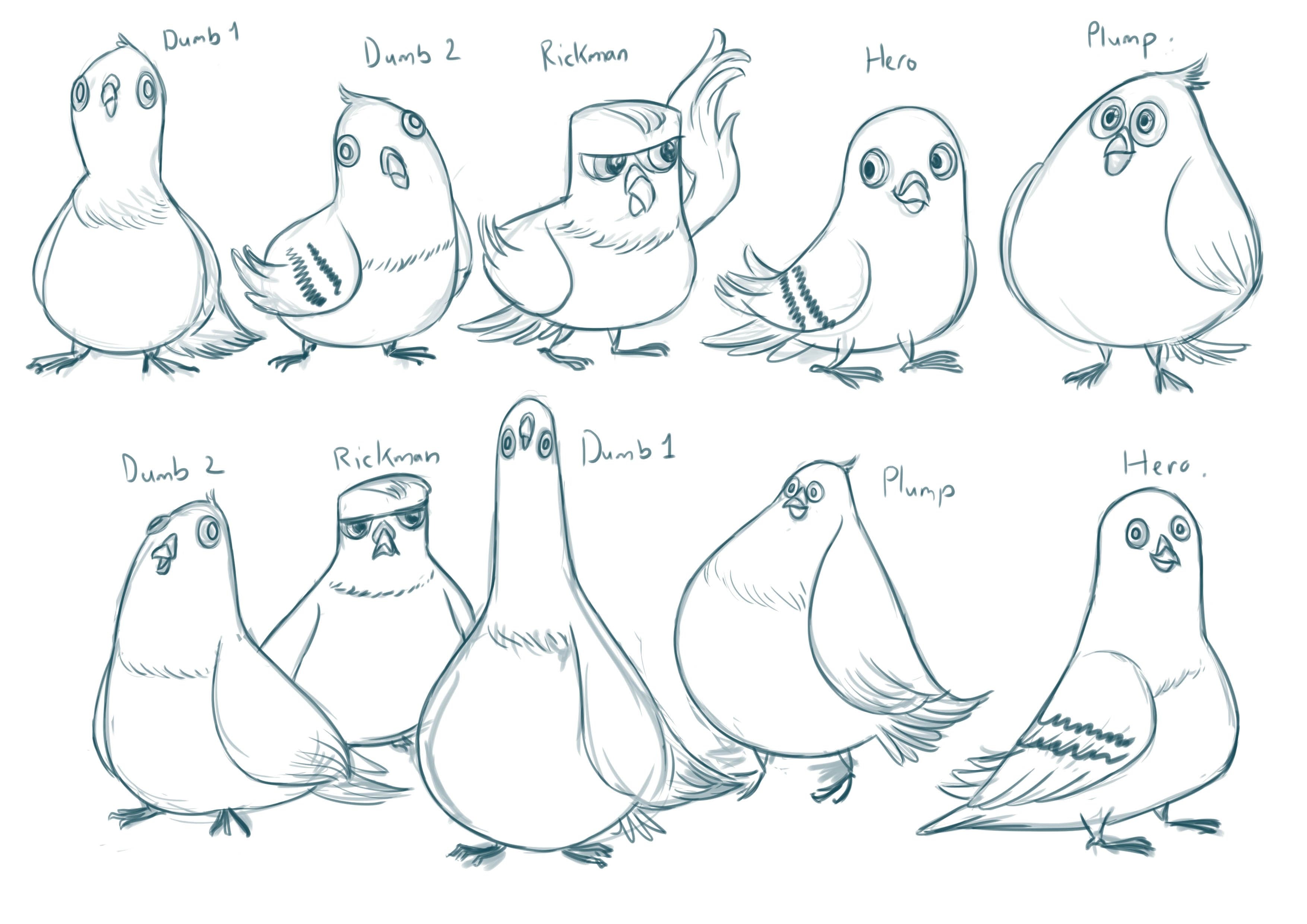 Whilst developing the pigeons we realised we wanted to have the pigeons growing up throughout the story.