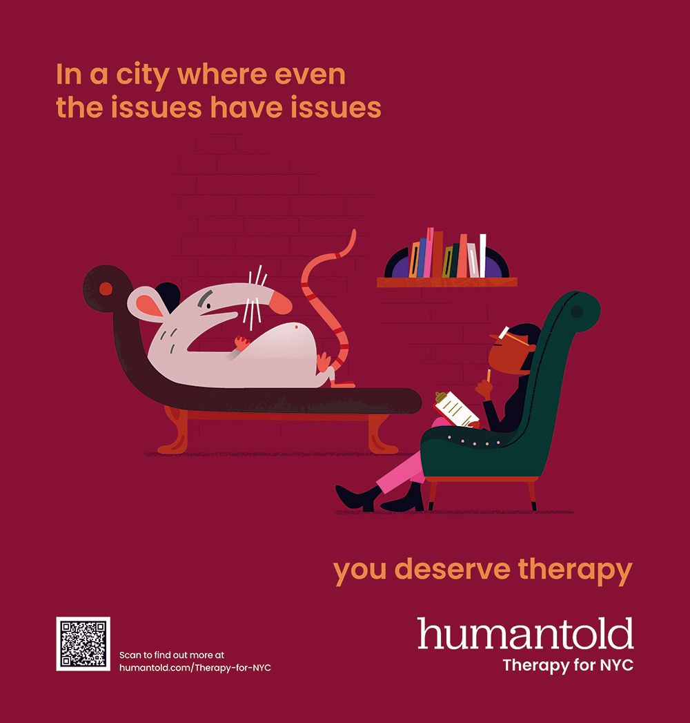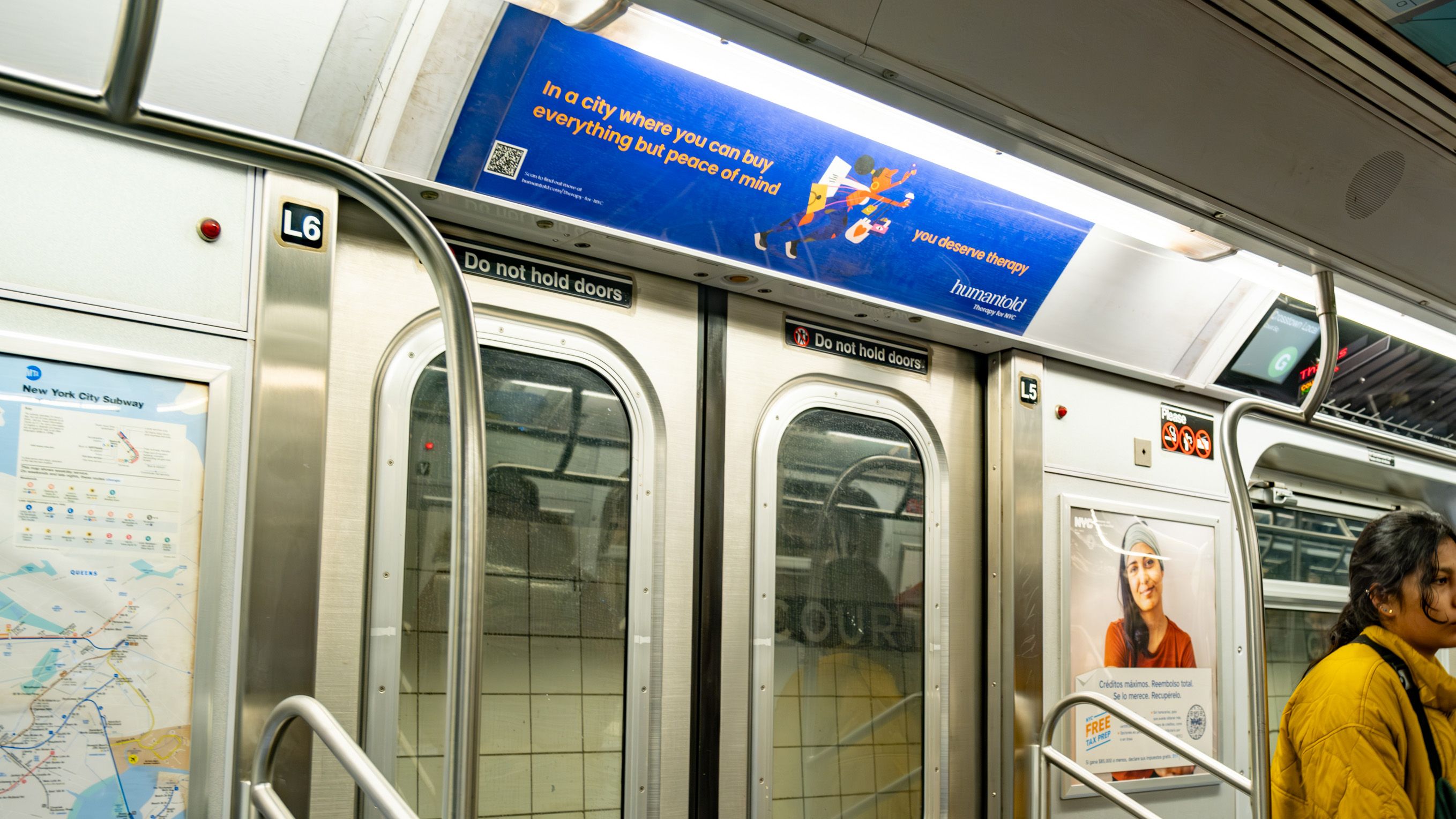 Characterful illustrator Alex Tait worked with Humantold, a company driven to provide access to high quality, affordable mental health care to all New Yorkers, helping ease the everyday stresses of living in the bustling city. To introduce the brand to its audience Alex designed charming illustrations to be used across out of home focusing on the iconic New York subway system, aiming to catch people in moments of stillness from their busy lives.