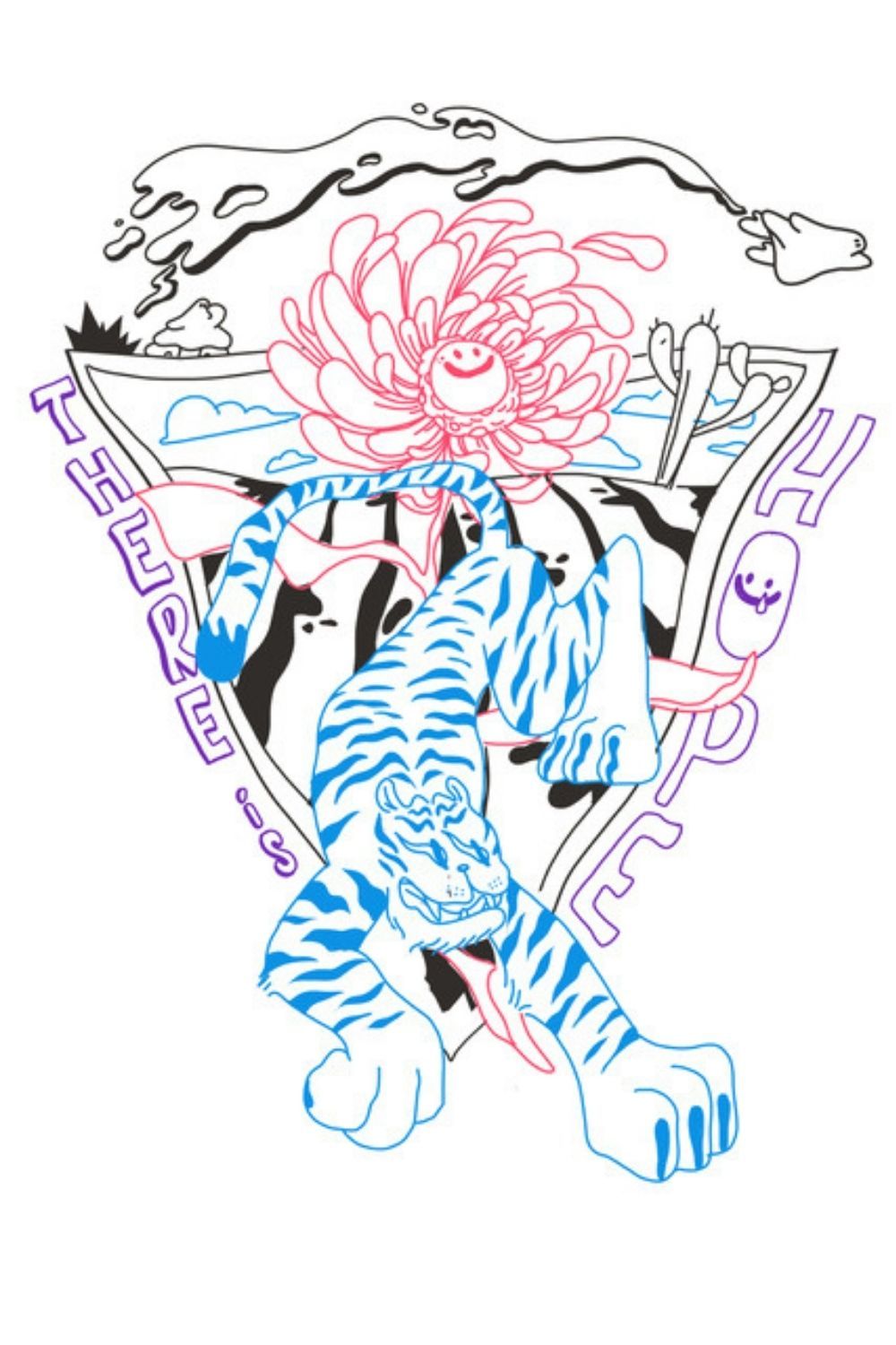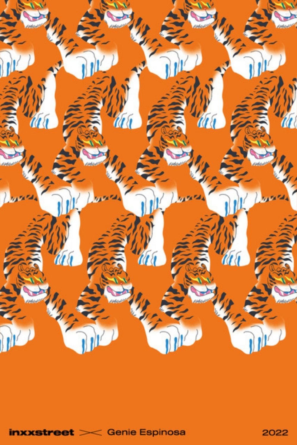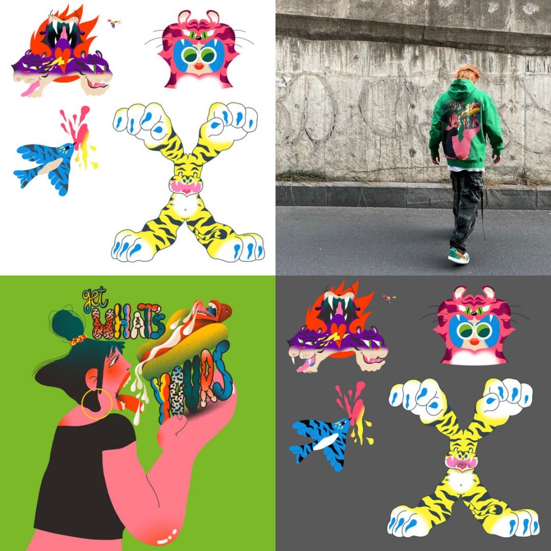 Genie brought her distinctive style to the brief , creating illustrations which were supplied to the in-house designers and used in INXX’s exclusive pop-up concept store in China. The tiger illustration was used to symbolise 2022 being the Year of the Tiger in the Chinese zodiac, a sign known for bravery and adventure, with Genie further complimenting this design with the brand logo & floral motifs.