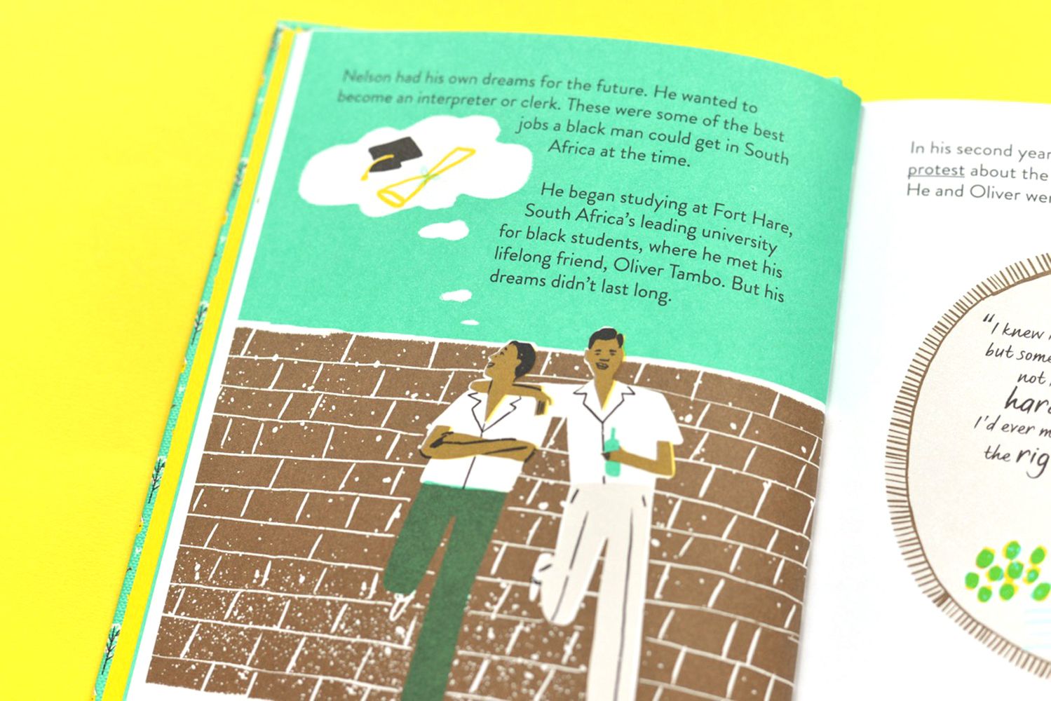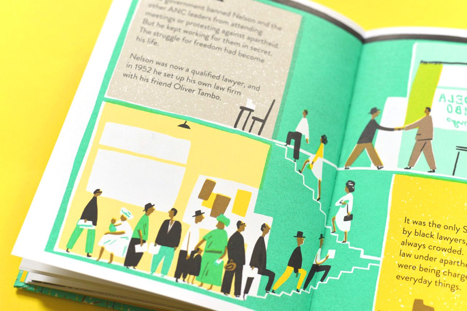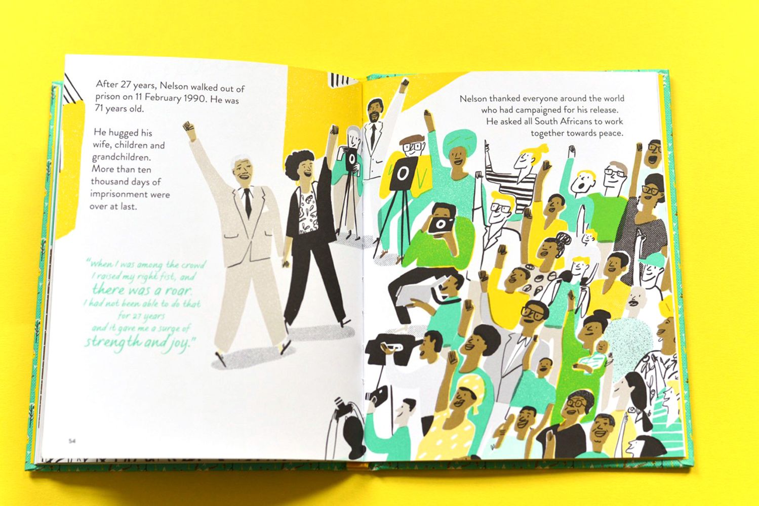 The whole book includes 64 illustrations that needed to be researched for historical accuracy, the correct clothing, vehicles, Mandela at different ages etc.
