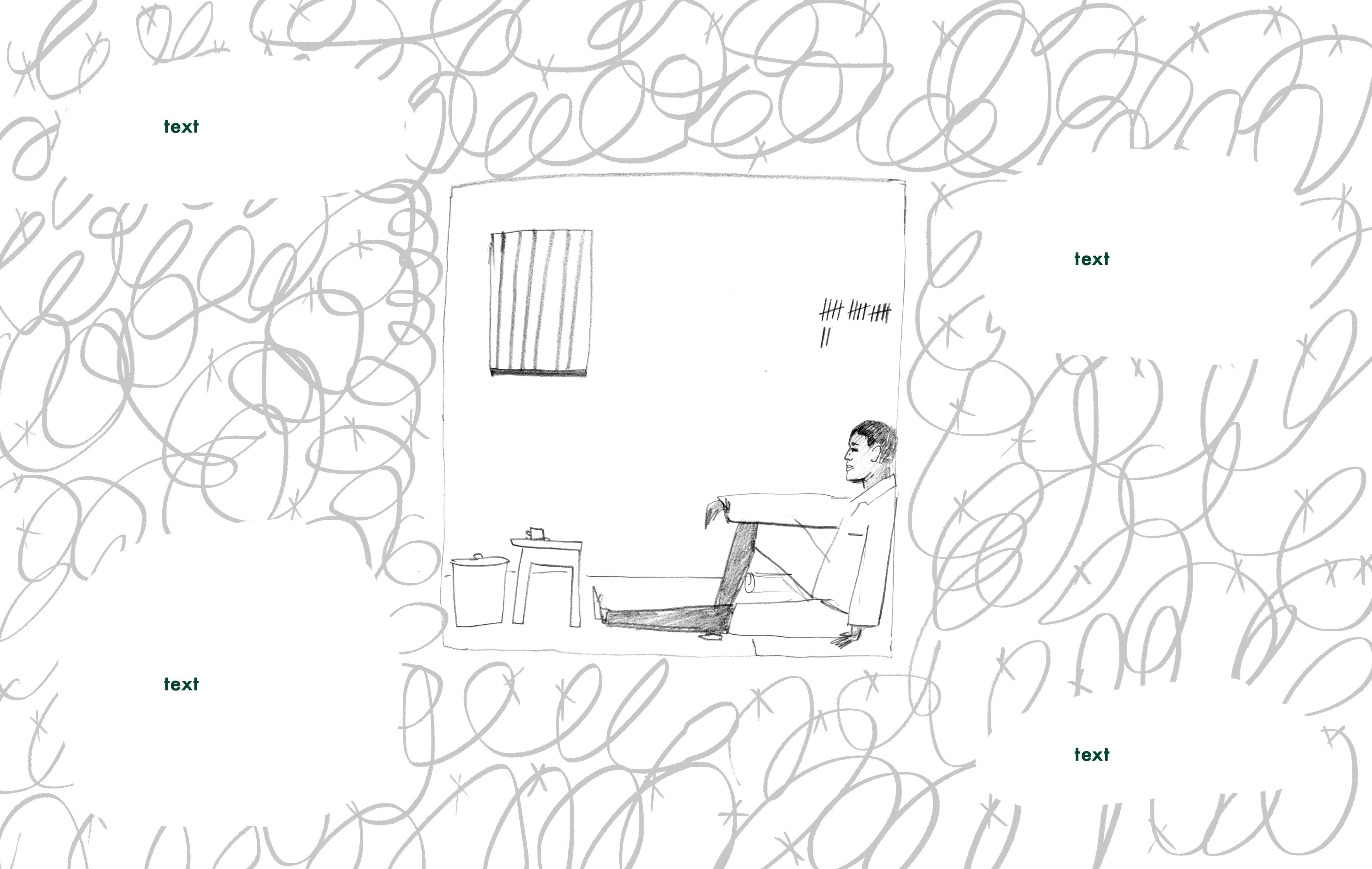 The next stage was to create pencil sketches, playing with the layout and the arrangement of text within the illustrations. Drawing a very recognisable face in Hannah’s style proved to be a challenge, and took some practice.