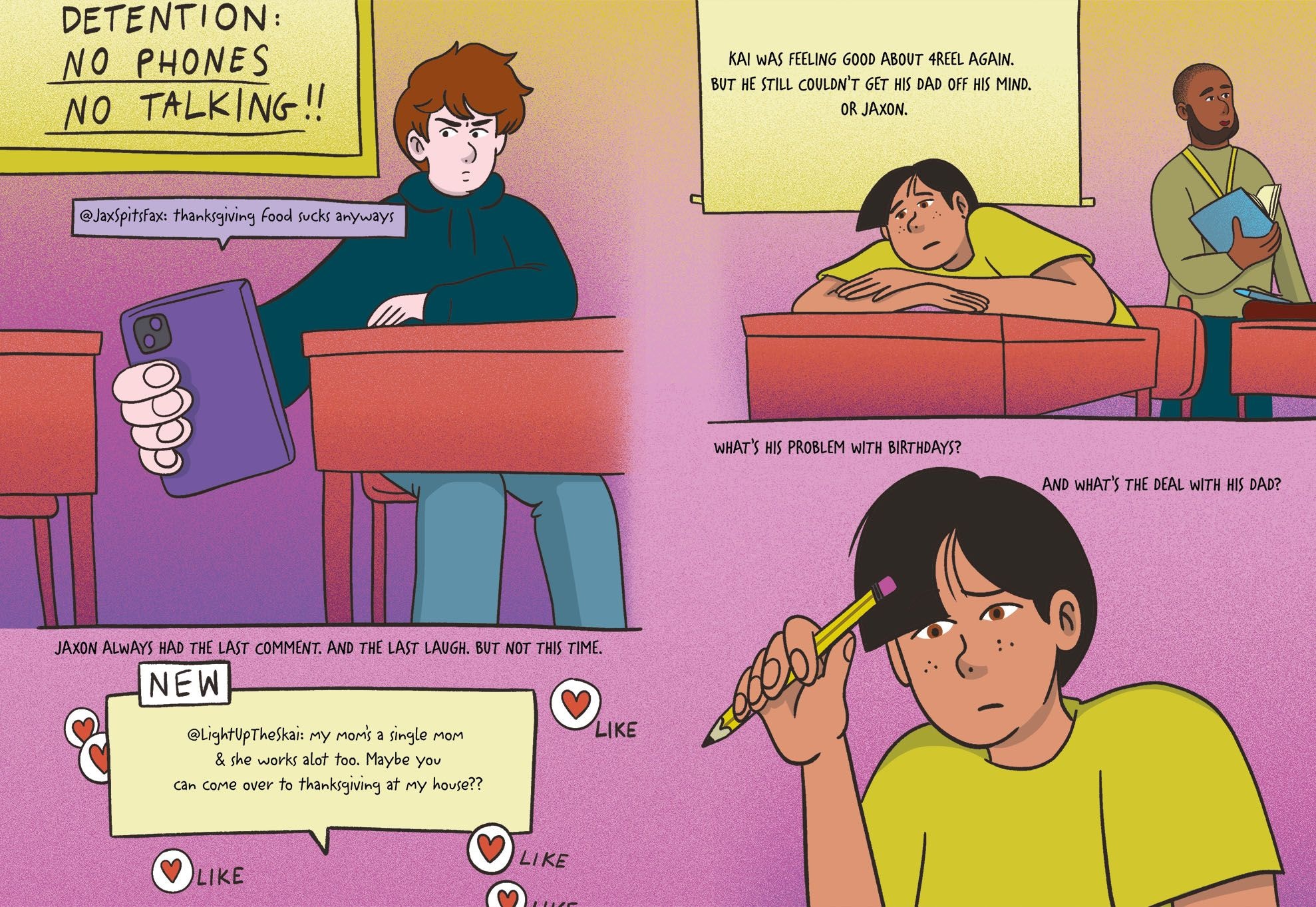 Genie Espinosa worked with the New York Life Foundation to illustrate the fourth graphic novel in their ‘Lost in the Middle’ series. Lost in the Middle follows the character of Kai and was launched to help children and their families process grief.