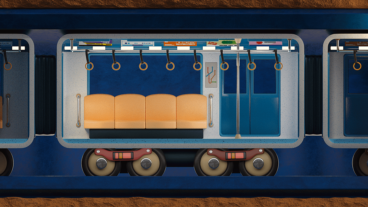 Designed to replicate a miniature model of a metro carriage, with inspiration from vintage train designs and an almost toy-like look to the rounded shapes and soft 3D sheen.