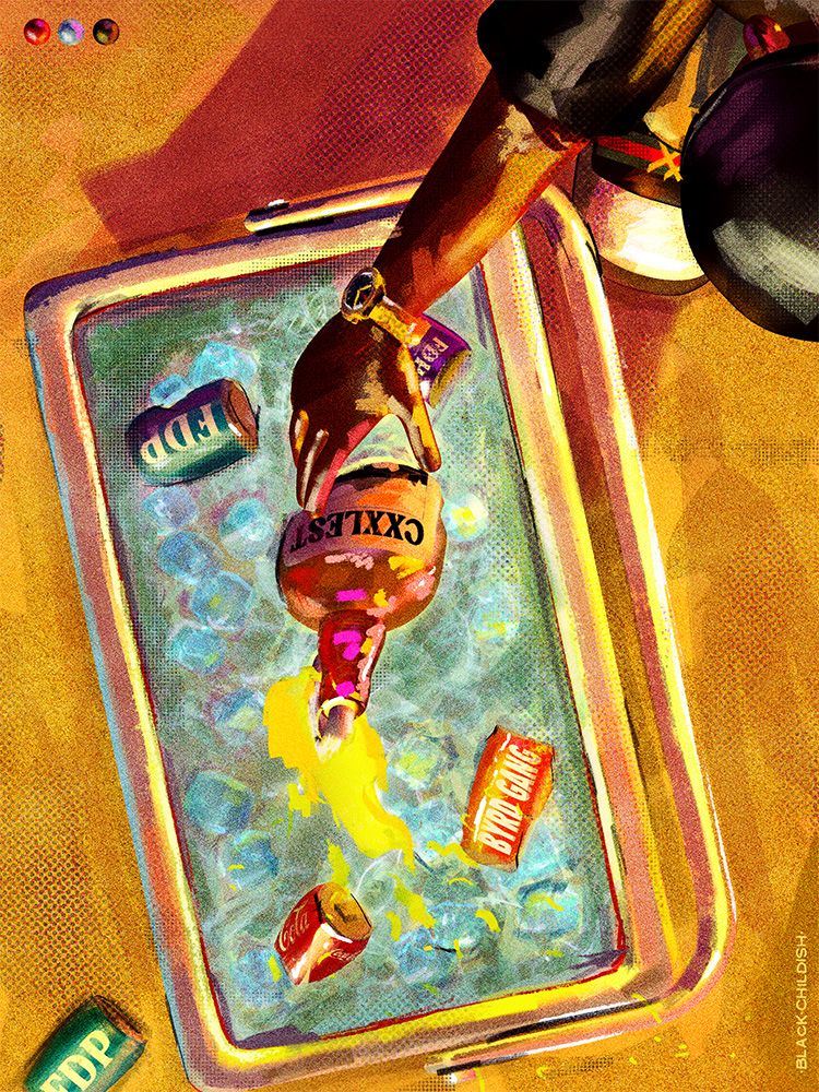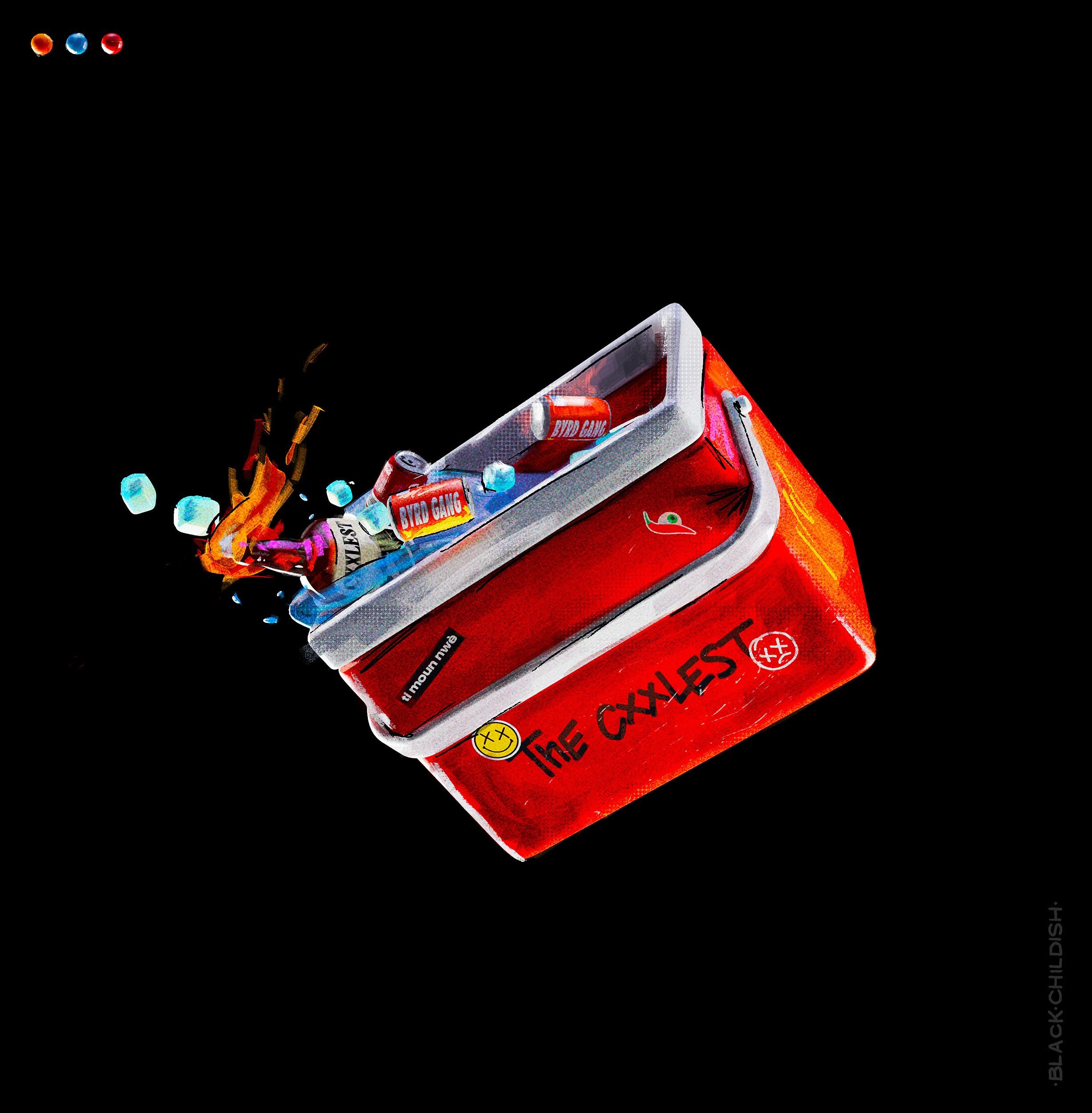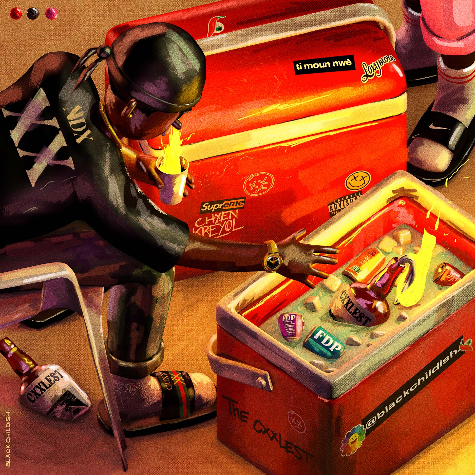 Black Childish designs artwork for the limited edition album merchandise for 'The Cxxlest Vol2' by Guadeloupean rapper, NDX using his signature vibrant textural mix of illustration techniques.