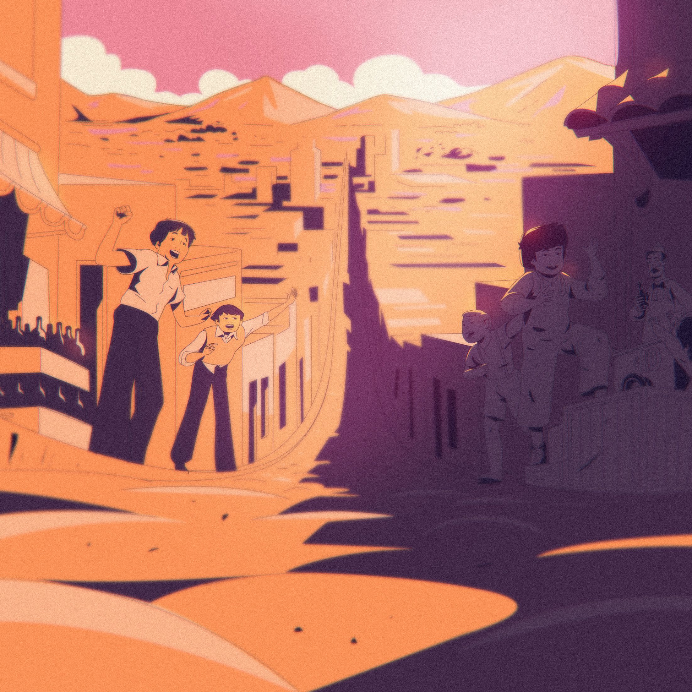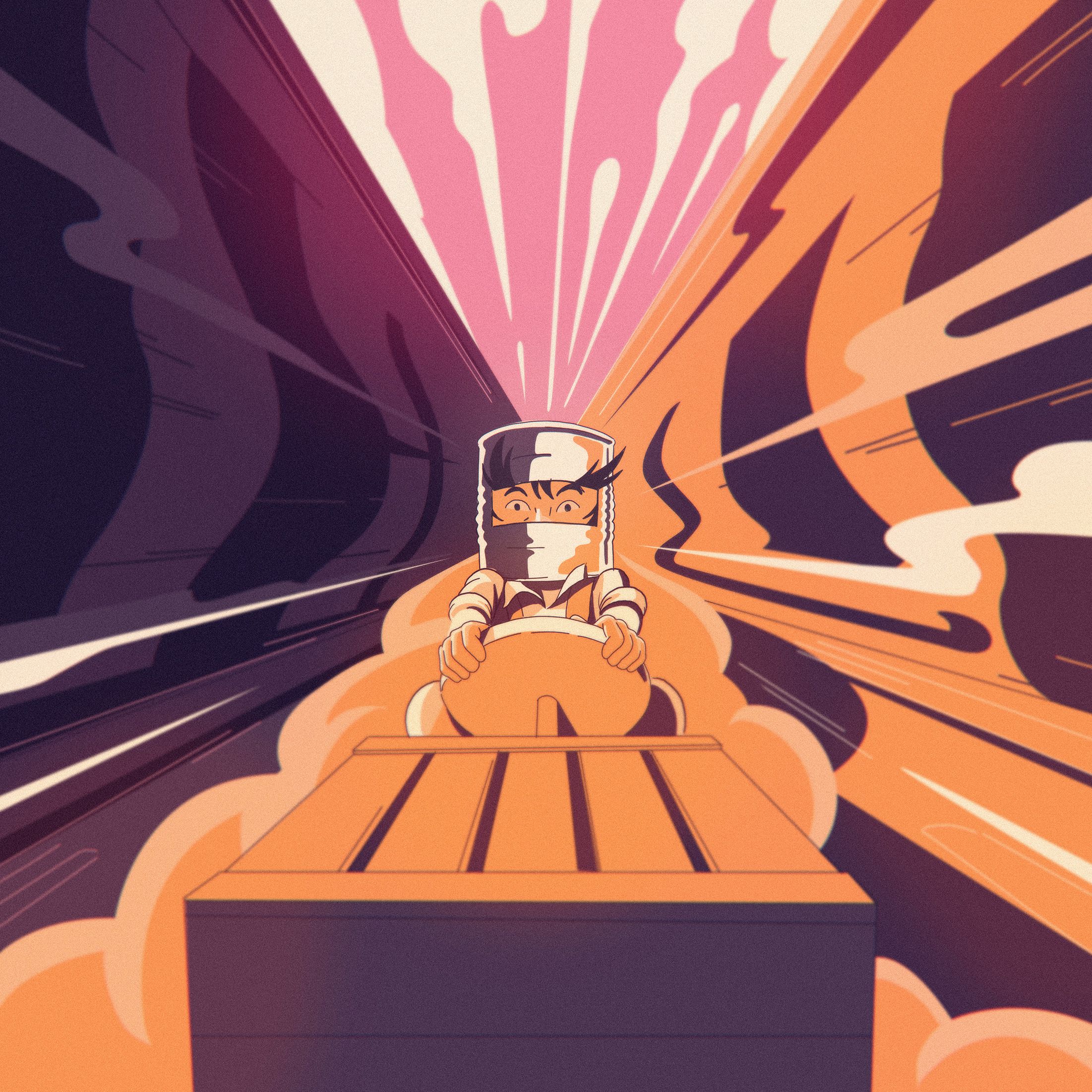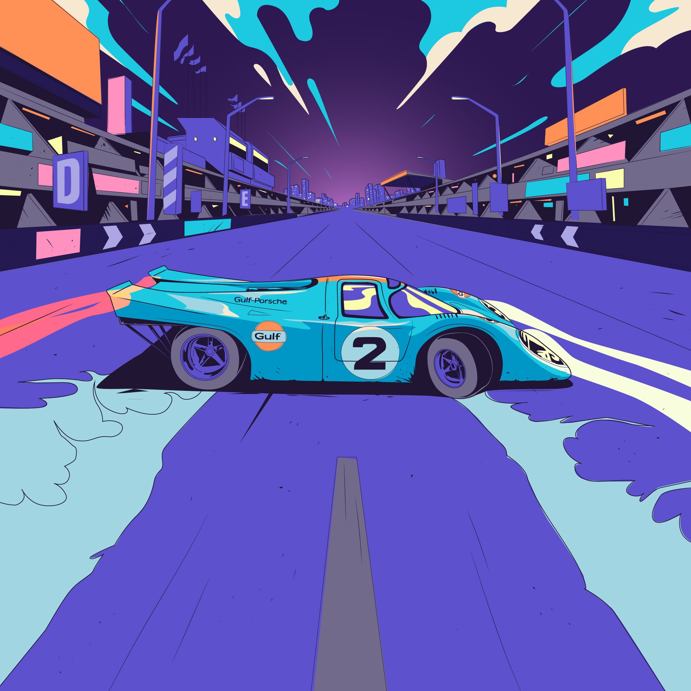 Knowing that the Porsche had to be exact even in 2D, Clubcamping went about animating frame by frame, using a 3D model to ensure the details were precise and true to life. Drawing inspiration from ‘60s and ‘70s graphic design, films, cartoons, and TV to illustrate Pedro’s world, the film is Speed Racer meets Akira.