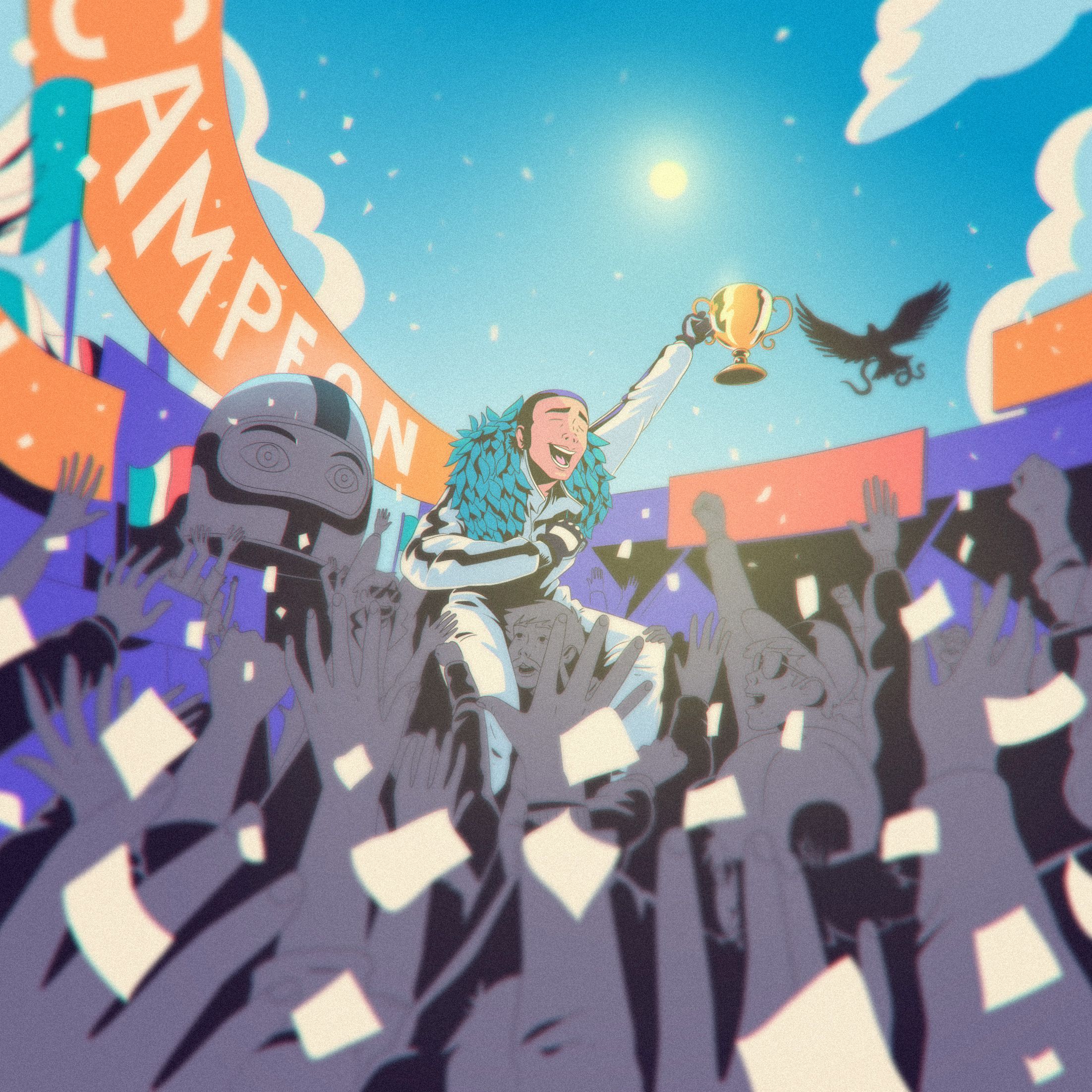 Embracing the fast pace and spontaneity of the film, Clubcamping jumped between After Effects, Animate, Photoshop, and C4D, crafting a vibrant film packed with action and energy, a perfect tribute.