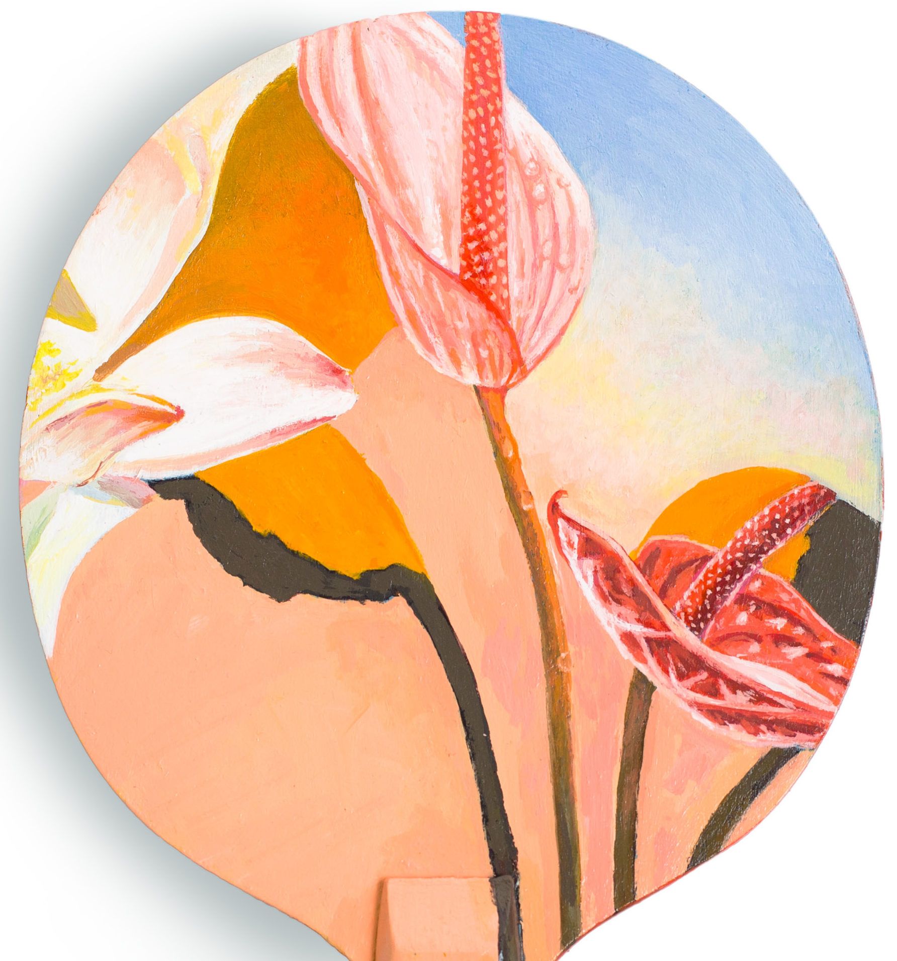 Rosanna used her signature collage style to create a bright, contemporary floral composition on both sides of the paddle, resulting in an end product that fuses striking artwork with functional design.