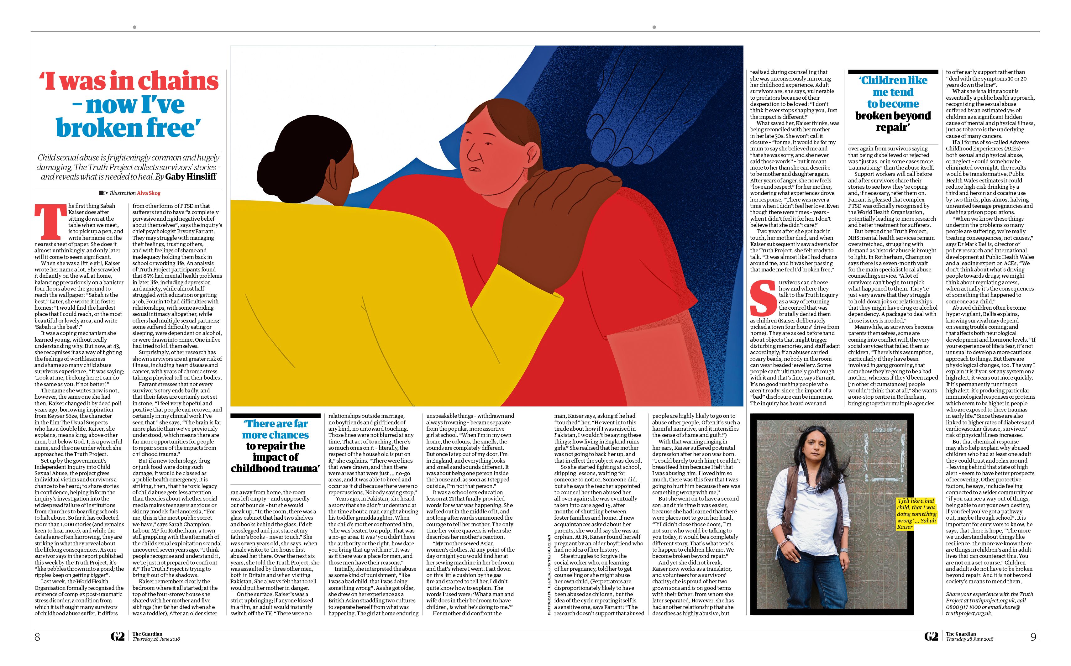 Alva Skog created illustrations for the cover and an inside feature of The Guardian’s magazine, G2. The illustrations accompany the article, ‘The pain of child abuse- and how to survive it‘.