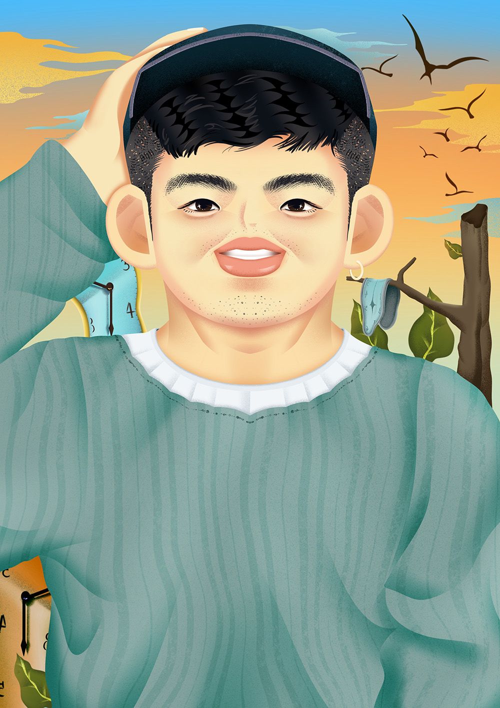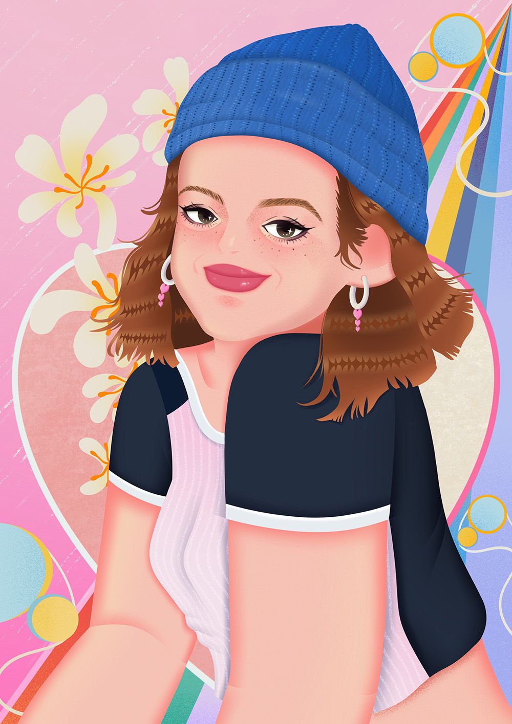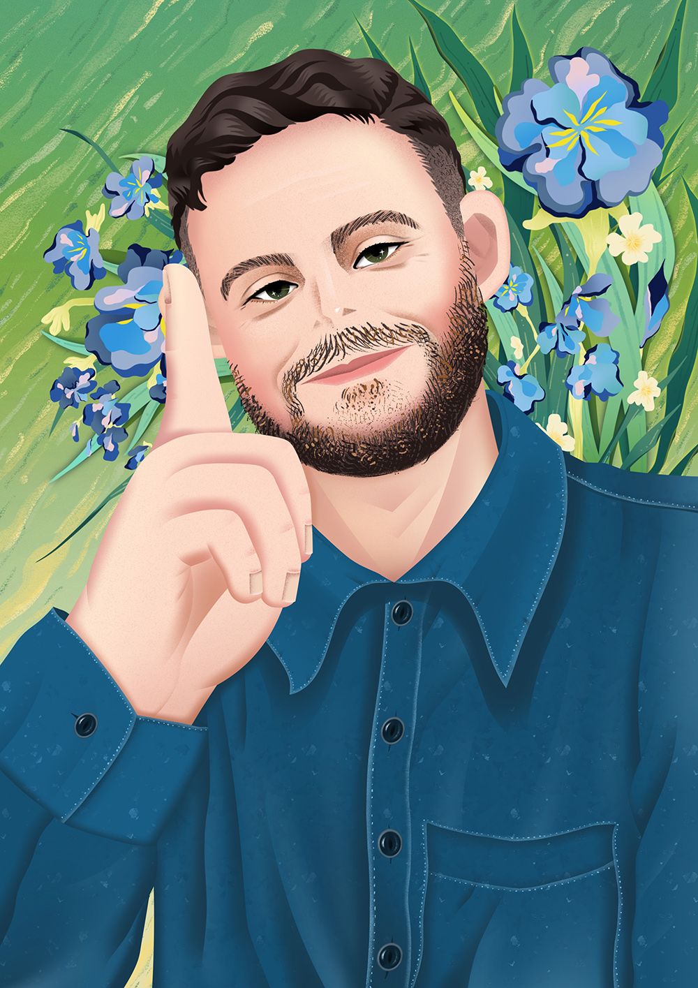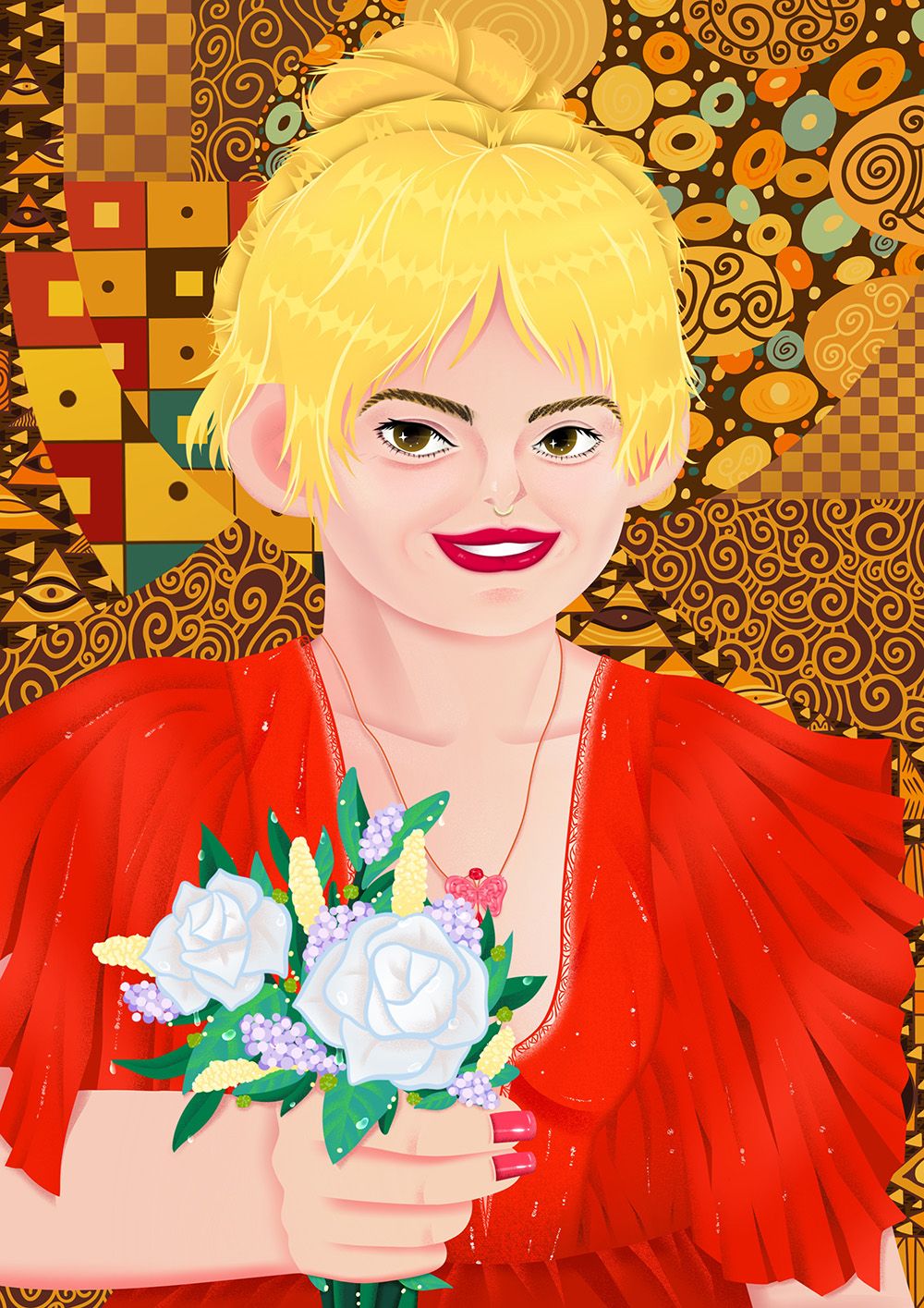 Wei created a series of portraits for agency Wieden + Kennedy London as part of their 'New Faces' initiative in partnership with It's Nice That. The series invited a selection of the most promising illustrators from the city to create portraits of the W+K staff which were then displayed in their office. Each person came with their own individual quirks and personalities that Wei incorporated into her designs as well as being inspired by classic artworks throughout history, blending the two into colourful illustrations that ensure Wei's dream-like style remains while also accurately depicting the person at the centre of each portrait.