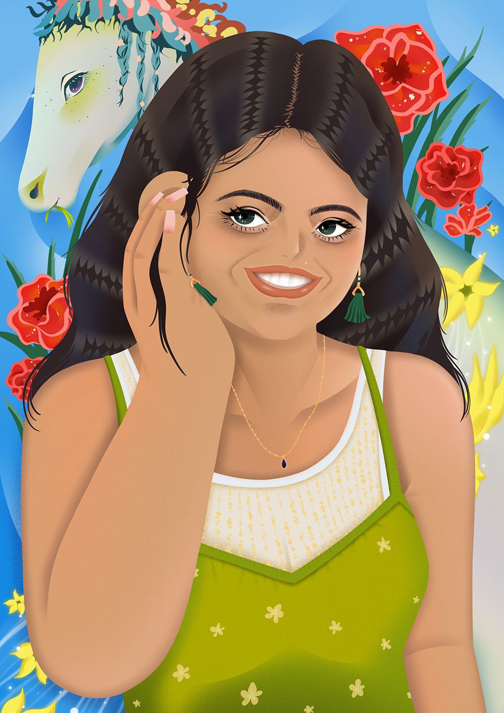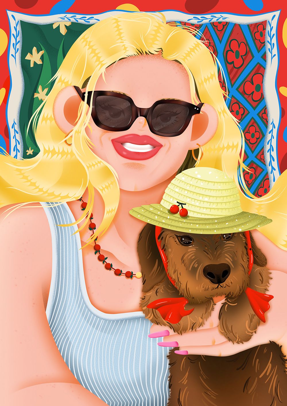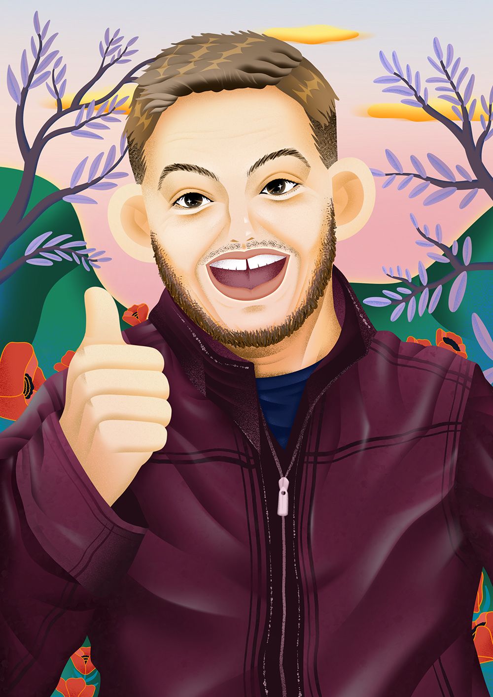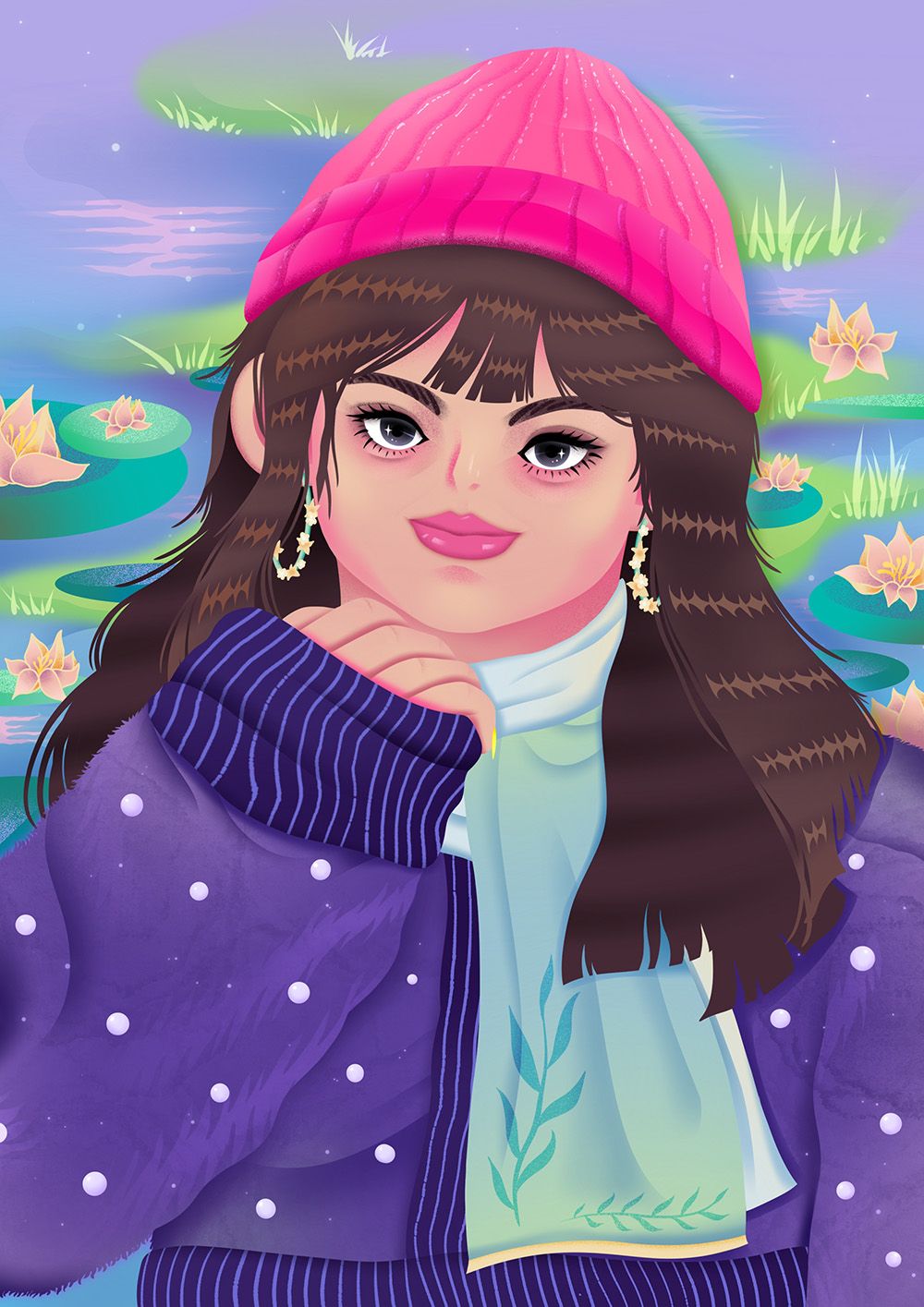 Wei created a series of portraits for agency Wieden + Kennedy London as part of their 'New Faces' initiative in partnership with It's Nice That. The series invited a selection of the most promising illustrators from the city to create portraits of the W+K staff which were then displayed in their office. Each person came with their own individual quirks and personalities that Wei incorporated into her designs as well as being inspired by classic artworks throughout history, blending the two into colourful illustrations that ensure Wei's dream-like style remains while also accurately depicting the person at the centre of each portrait.
