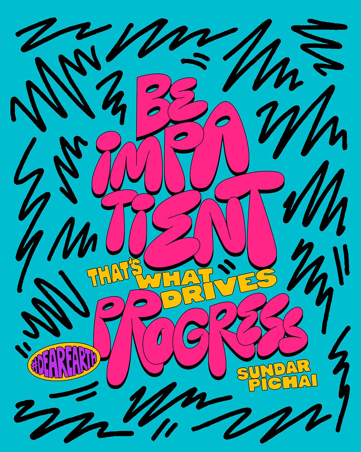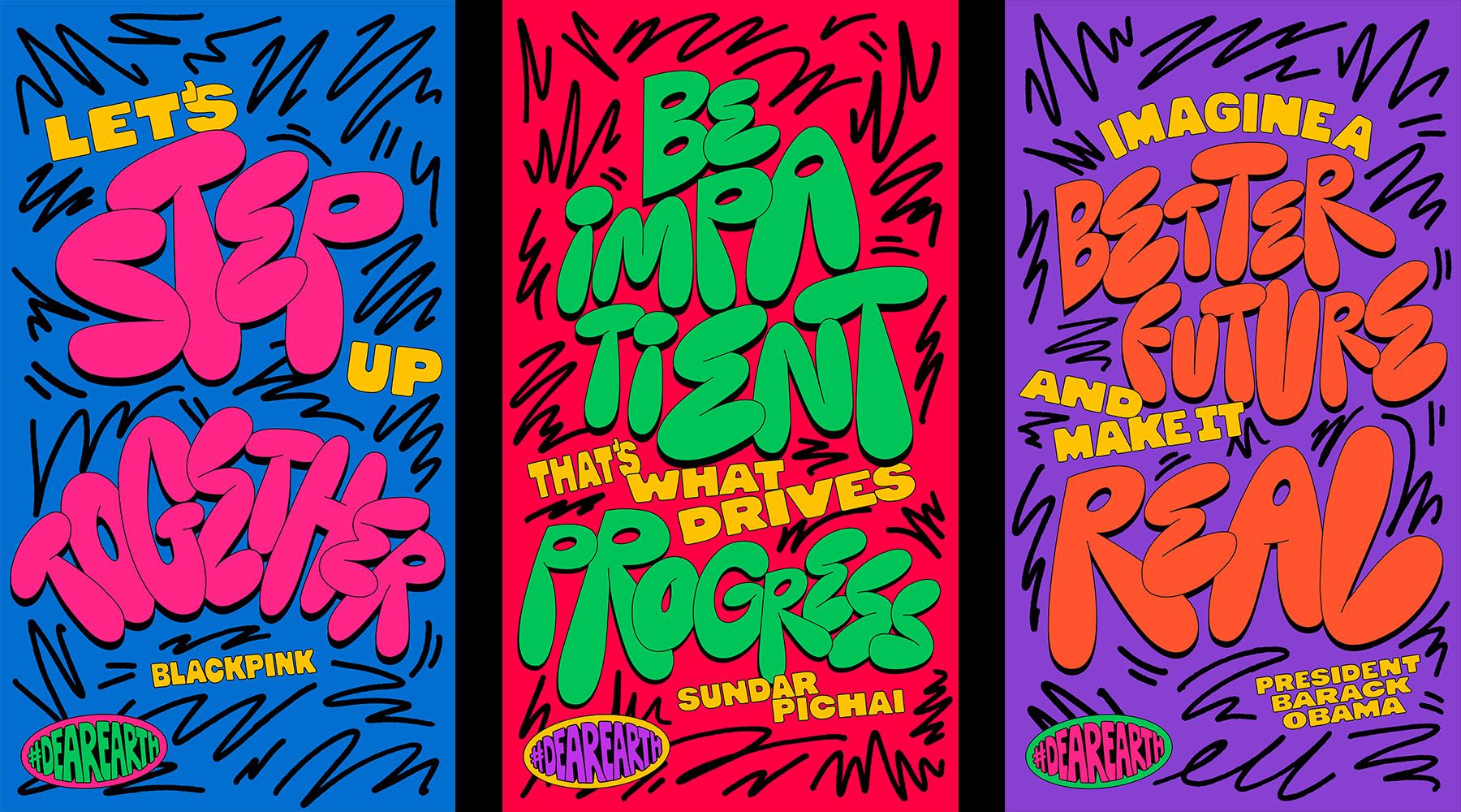 The Brooklyn Brothers and YouTube commissioned Lebassis to create lettering wallpapers to launch their new ‘Dear Earth’ YouTube Original to coincide with COP26. ‘Dear Earth’ is “an epic global celebration of our planet and what we need to do to reverse climate change. Sprinkled with musical performances, Dear Earth will also contain well-known climate activists, creators, and celebs who will all share ways to make our lives more sustainable.”The series will feature appearances from Barack Obama, Desmond Tutu, Billie Eilish, BLACKPINK, Jaden Smith, Lil Dicky + GaTa, the Muppets and SpongeBob SquarePants, along with several YouTube creators. The show kicks off a month of new series, ideas, and actions focused on healing the planet.