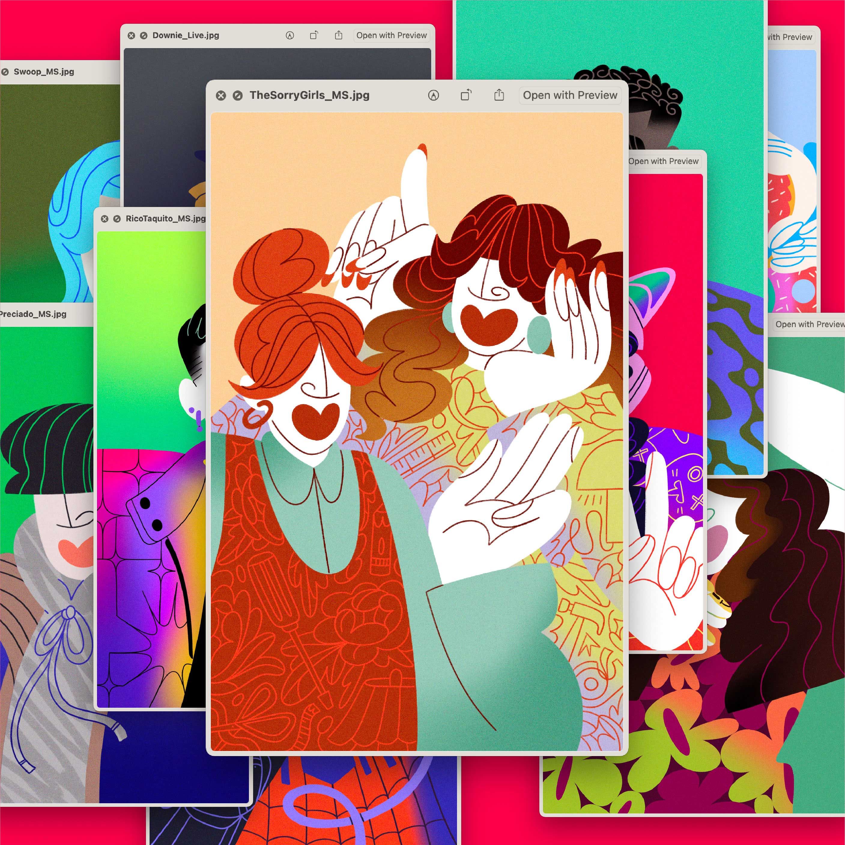Working as part of a larger team of Artists, Meredith was tasked with a new Creators portrait each 1-2 hours during an installation at YouTube's VidCon. The final series of live portraits capture the energy and personality of each of the individual Creators.