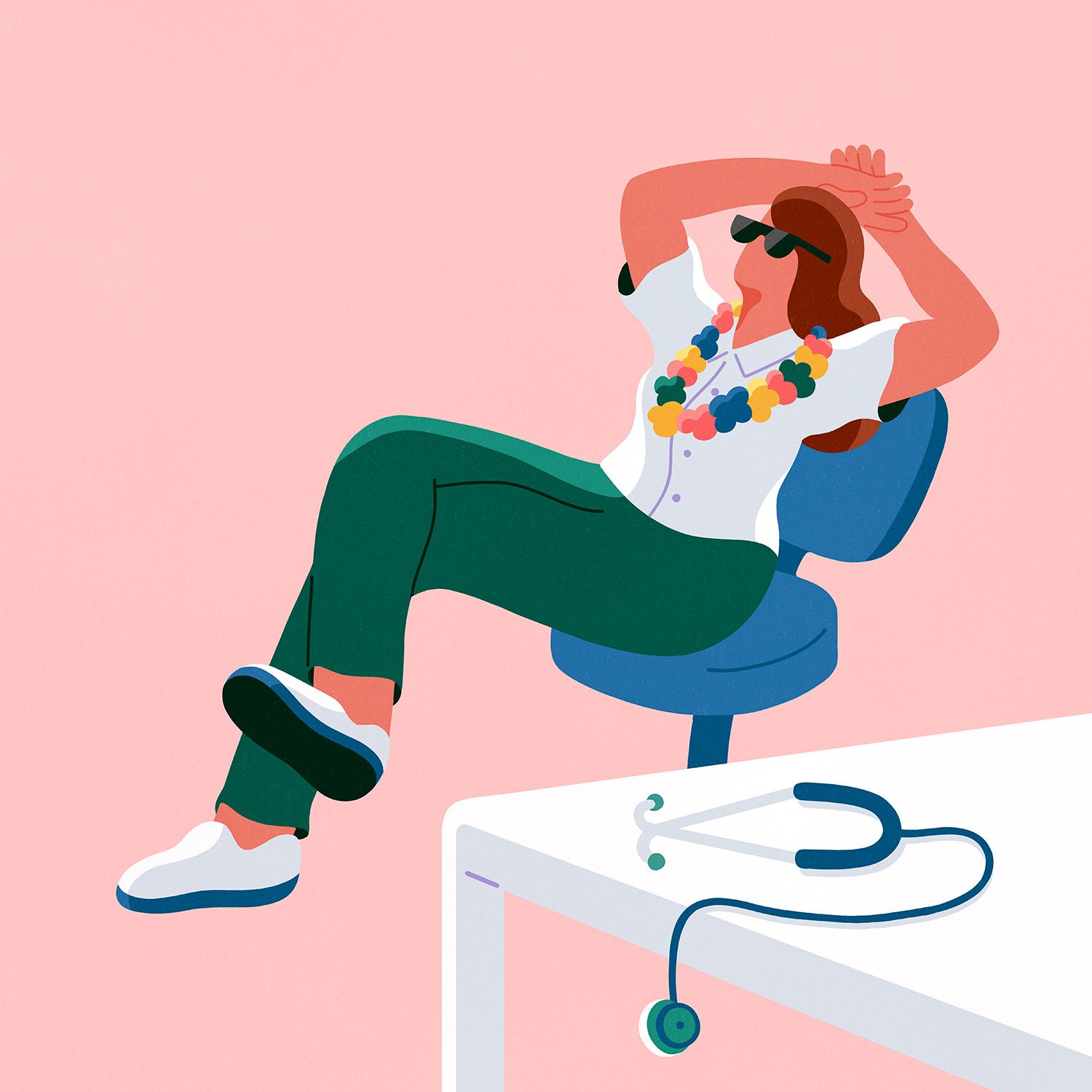 Working together with Achtung! In Amsterdam, Peter created illustrations for Zorgwerk, a Dutch job finder website for the health care industry. The series was created for Zorgwerk’s summer campaign.